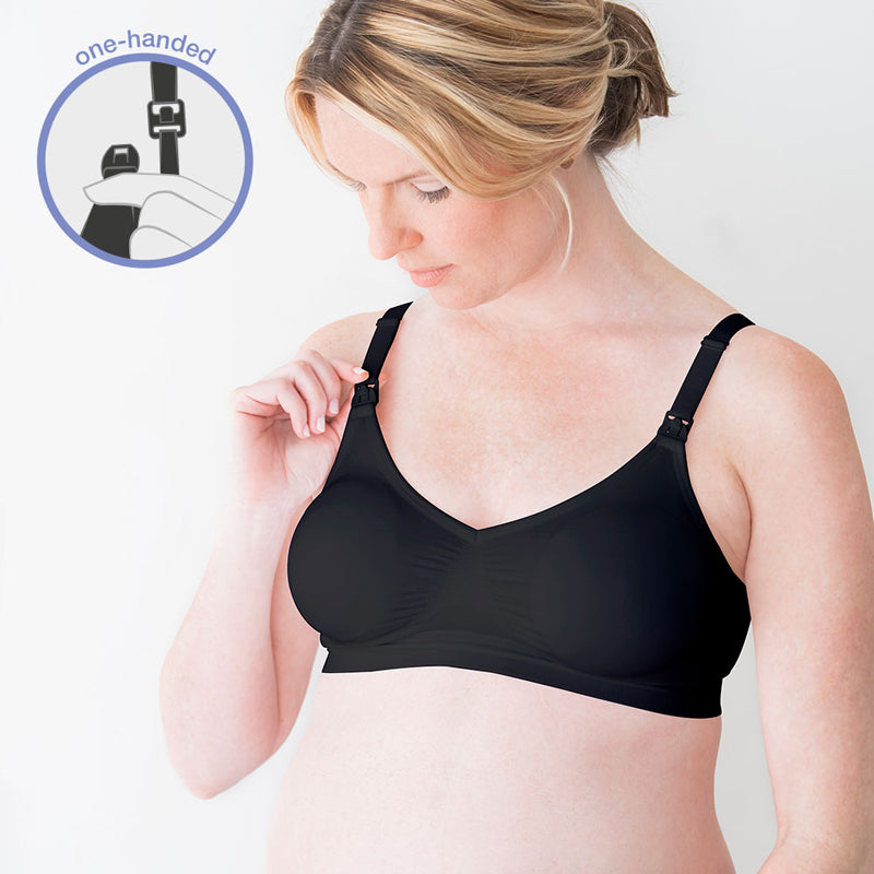 O sutiã confortável e elástico Comfy foi desenvolvido com suporte leve e conforto durante todo o dia. Ele foi projetado para expandir e adaptar-se perfeitamente ao seu corpo em mudança. Seu design sem fio e sem costura proporciona conforto diário durante a gravidez e durante a amamentação. Uma frente de dupla camada e os copos de espuma removíveis oferecem apoio e discrição. E nossos clipes fáceis de abrir e fechar com uma mão facilitarão sua experiência de enfermagem.