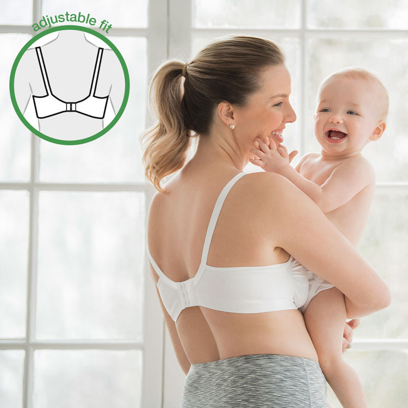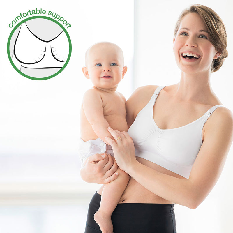Não tem aro nem costuras para máximo conforto e bom suporte. Quer esteja grávida ou a amamentar, o material elástico em quatro direções do soutien para maternidade e amamentação da Medela ajusta-se à sua forma variável para um suporte confortável durante todo o dia. Afinal, o corpo da mulher muda durante a gravidez e após o parto. Este sutiã é ideal – não importa em que estágio você esteja, qual o seu tamanho ou para qual ocasião você precisa dele.
