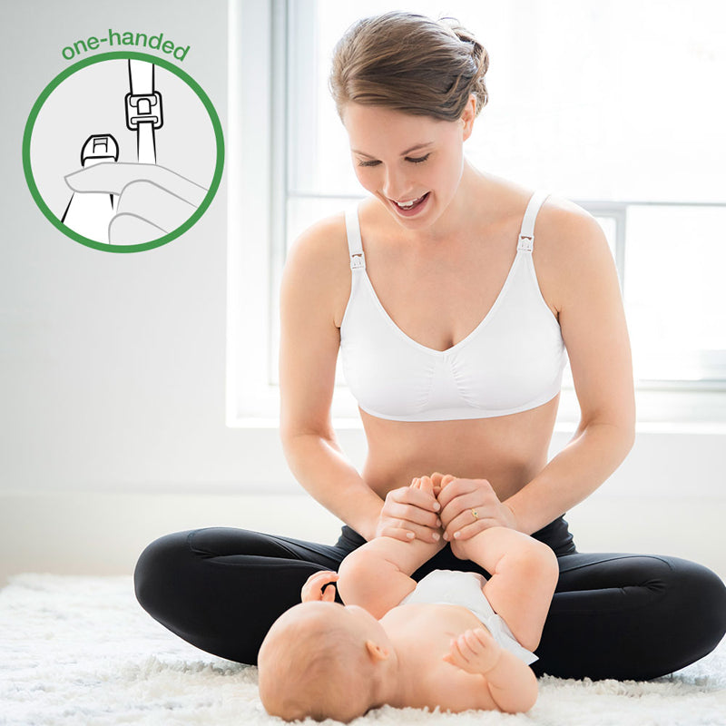 O processo de amamentação é apoiado pelos clipes fáceis de "abrir e fechar" com uma mão que fornecem uma liberação rápida para o bebê acessar para amamentação.