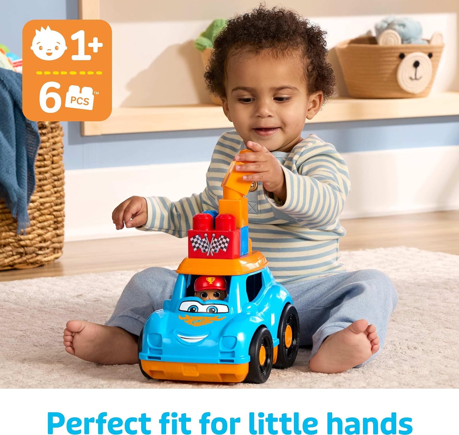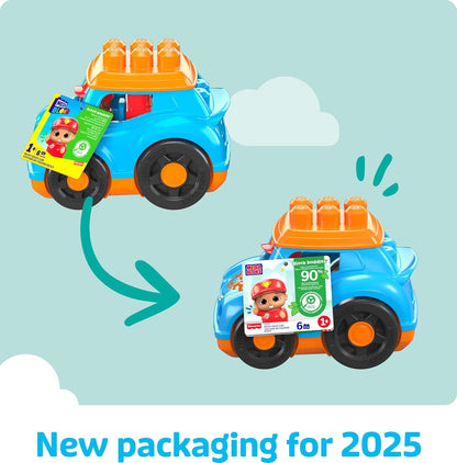 MEGA BLOKS Fisher-Price Toddler Building Blocks Toy Car, Ricky Race Car com 6 peças e armazenamento, 1 figura, azul, ideias de presentes para crianças de 1 ano ou mais, HKN41
