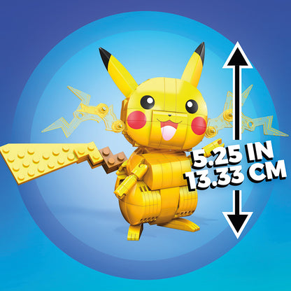 Este Pokémon do tipo elétrico tem mais de 10 centímetros de altura e pode criar várias posturas heróicas quando você o coloca em diferentes posições prontas para a batalha. Este Pikachu fielmente modelado inclui detalhes de ataque do tipo elétrico em suas bochechas para uma experiência de construção chocantemente autêntica.