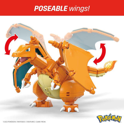 MEGA Figura de ação Pokémon, Pokémon Charizard, brinquedos de construção para crianças e adultos, modelo de personagem colecionável com 222 peças e alfinete de pokébola, 10 cm de altura, brinquedo para maiores de 8 anos,