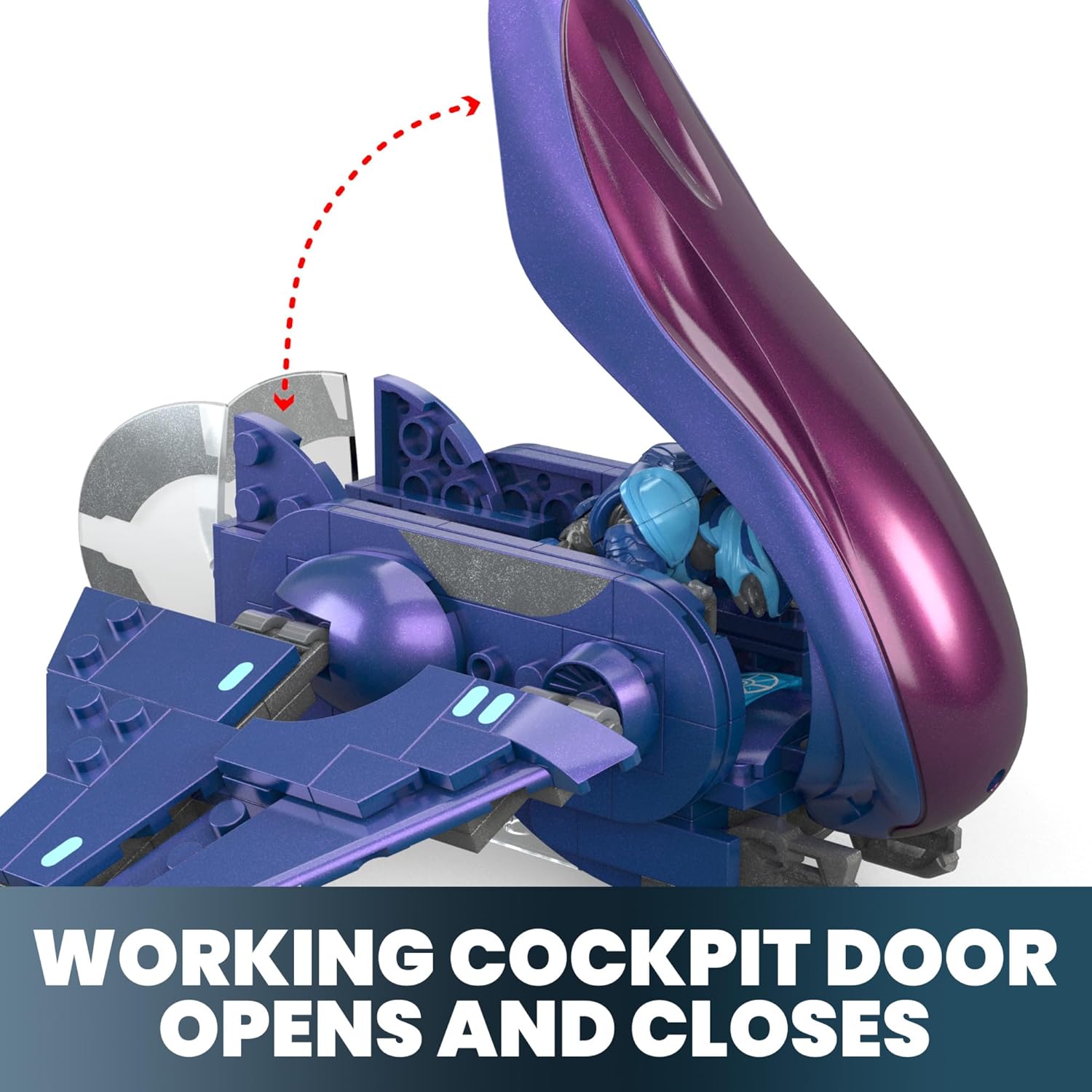 MEGA Conjunto de brinquedos de construção de veículos Halo The Series, aeronave Renegade Banshee com 205 peças, 2 micro figuras de ação, roxo, crianças e fãs