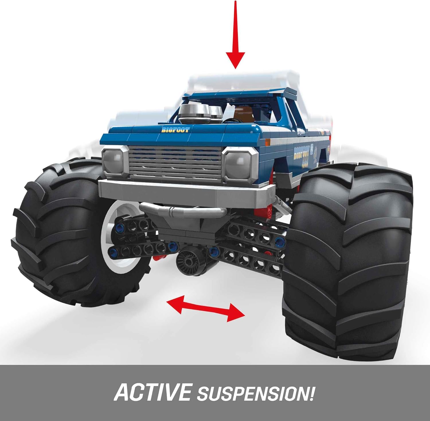 - Conjunto de construtor adulto Hot Wheels Bigfoot Monster Truck em grande escala de 538 peças 1:18 com elementos de design autênticos e gráficos e decoração icónicos