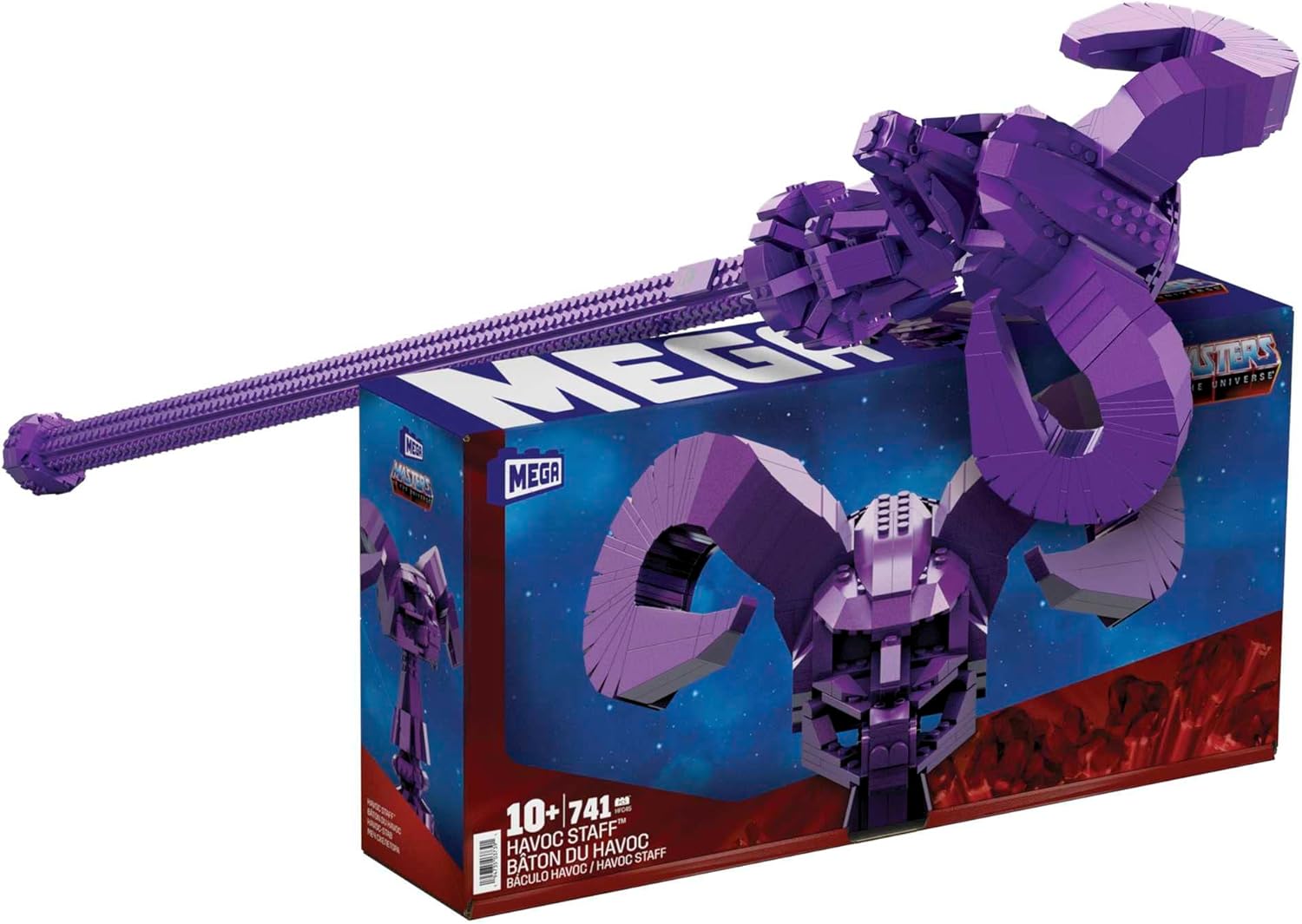 MEGA Masters of the Universe Havoc Staff MOTU Conjunto de construção de brinquedos para colecionadores de fãs adultos, 40,5 polegadas de comprimento, 741 peças, para meninos e meninas, maiores de 10 anos -