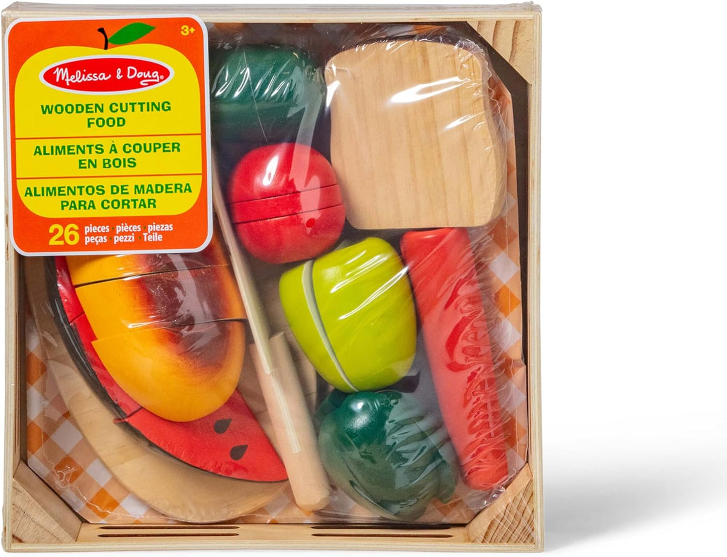 Melissa & Doug Corte de madeira Brincar Comida Brinquedos de comida de madeira Brinquedo Comida Brincar Comida Acessórios de cozinha 3+ Presente para menino de 3 anos, presente para menina de 3 anos