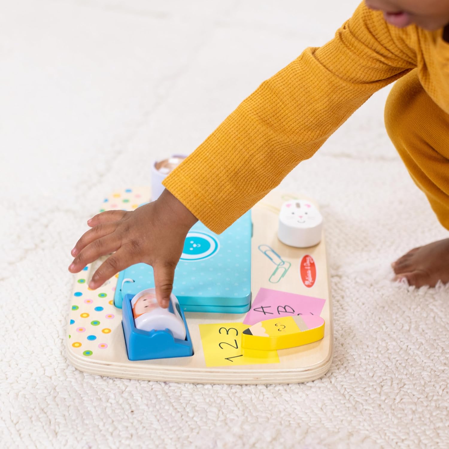 Melissa & Doug Placa de atividades de madeira para trabalhar e brincar, brinquedo infantil e infantil, brinquedos de desenvolvimento inicial e atividades, brinquedo sensorial de madeira para bebês por mais de 12 meses
