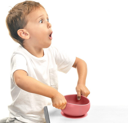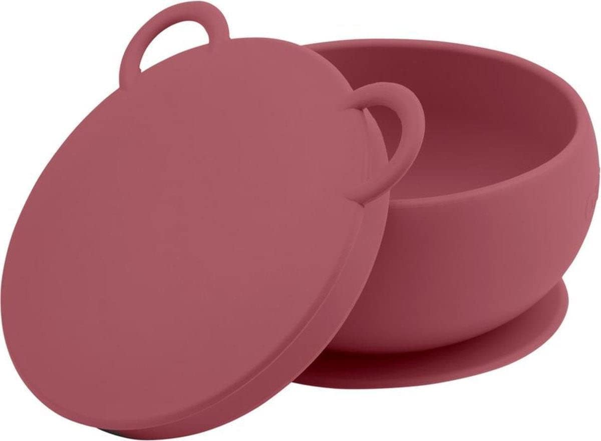 Minikoioi Tigela de silicone rosa escarlate para bebês e crianças (6M+)
