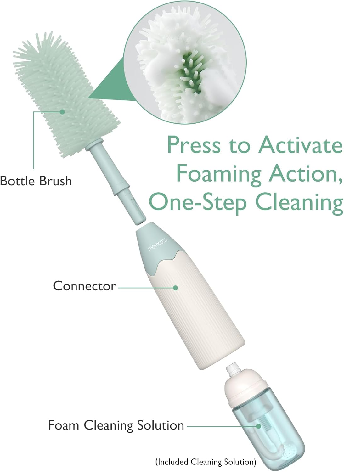 Momcozy Conjunto inovador de escovas para mamadeiras, design de espuma para facilitar a limpeza, 2 cabeças de escova de reposição para uma limpeza completa e melhor das mamadeiras, kit de limpeza de mamadeiras com escova de canudo