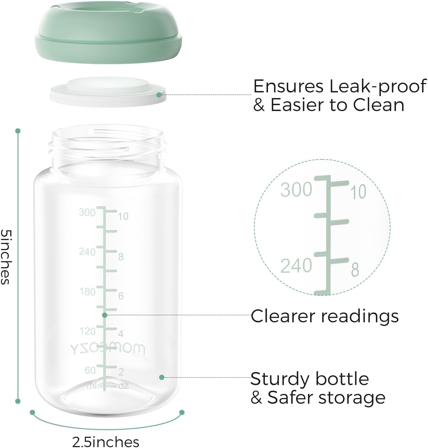 Momcozy Mamadeira Natural, Recipiente para Leite Materno de 300ml com Gargalo Largo, Garrafa para Armazenar Leite Materno na Geladeira e Bolsa Térmica para Leite Materno Momcozy, Garrafas Coletoras de Leite sem BPA,