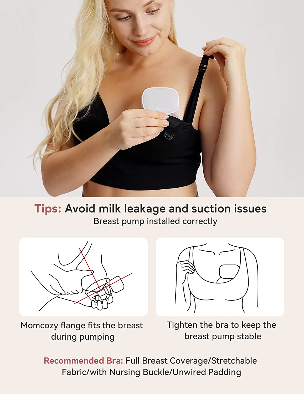 Leite à prova de vazamento: sistema fechado de design profissional, válvula de proteção de silicone ajuda a evitar vazamento de leite. O extrator de leite Momcozy tem capacidade para 180ml e o recipiente está marcado com uma marca de visto. O volume ideal de extração de leite recomendado é de 120 ml.