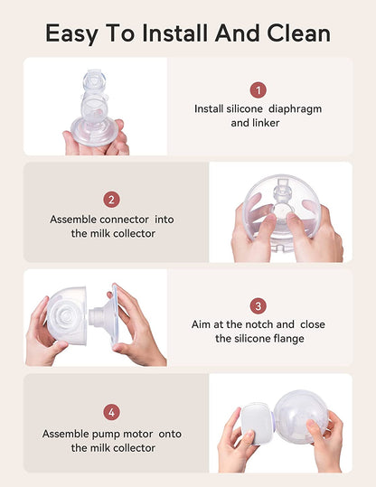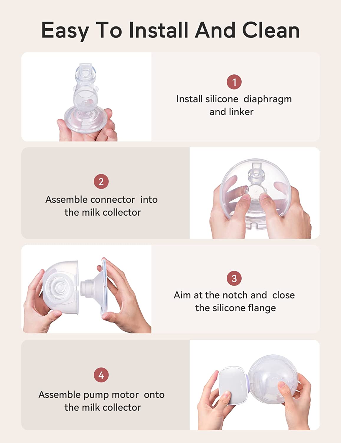 Baixo ruído - Tecnologia de bombeamento inovadora, o som é inferior a 50 dB quando usado e não perturba o bebê dormindo. As bombas de mama sem fio e mãos-livres são convenientes para a mãe usar a bomba a qualquer momento. A fivela de ajuste do sutiã embutida ajuda a melhorar o uso do extrator de leite.