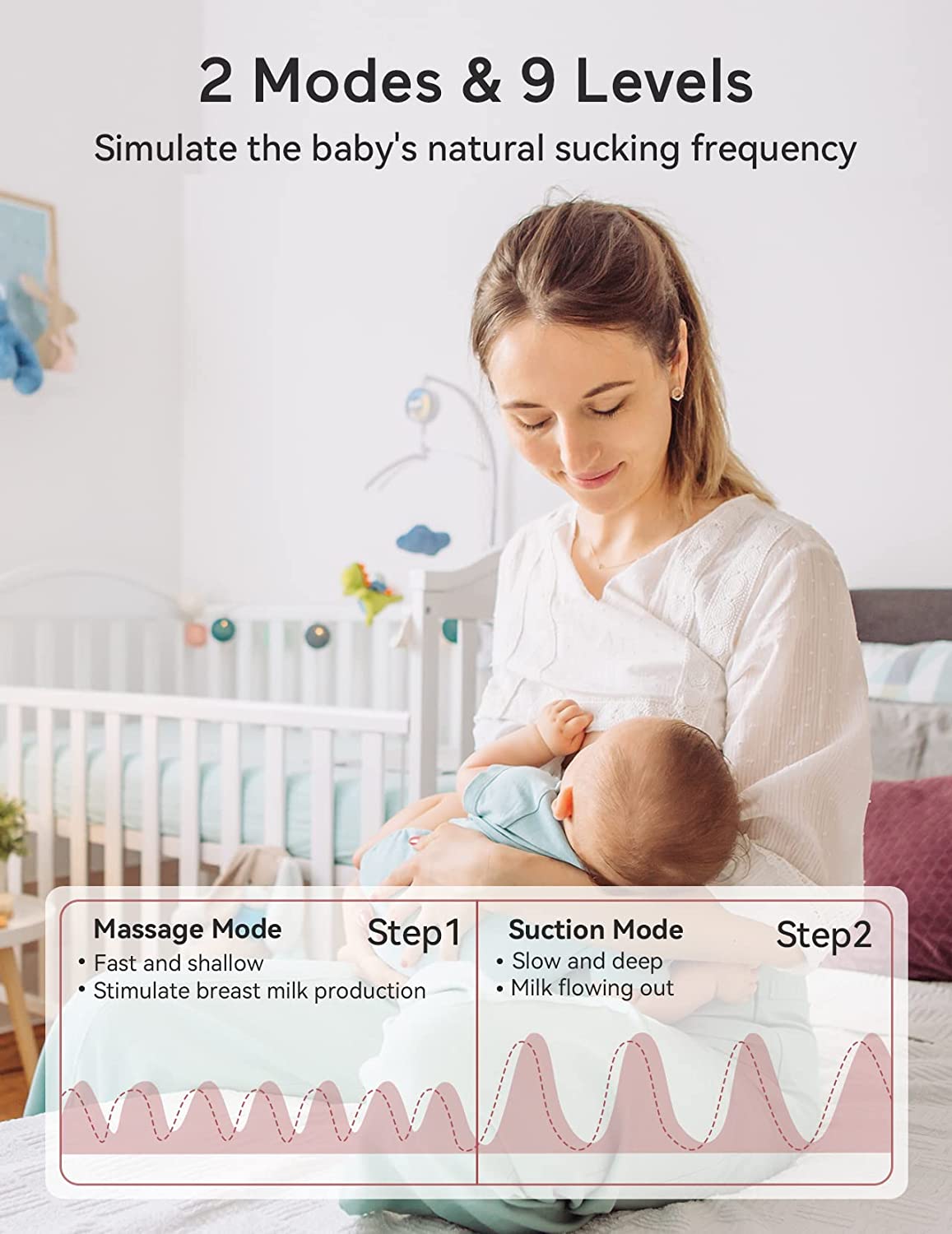 Bomba de mama portátil Momcozy - A bomba de mama elétrica Momcozy tem 2 modos e 9 níveis. Sugestões para seleção do modo: massagear primeiro e depois bombear, imitando o modo de alimentação do bebê para otimizar a produção de leite. Garanta que cada mãe produza mais leite em menos tempo e dê mais opções e conforto às novas mães.