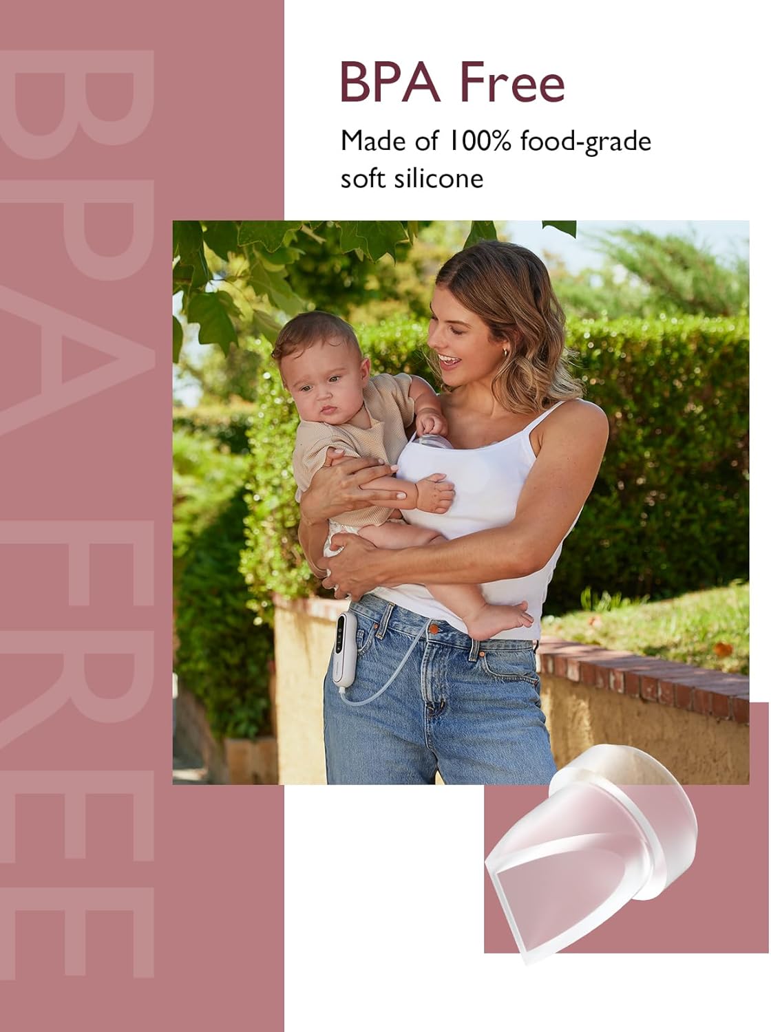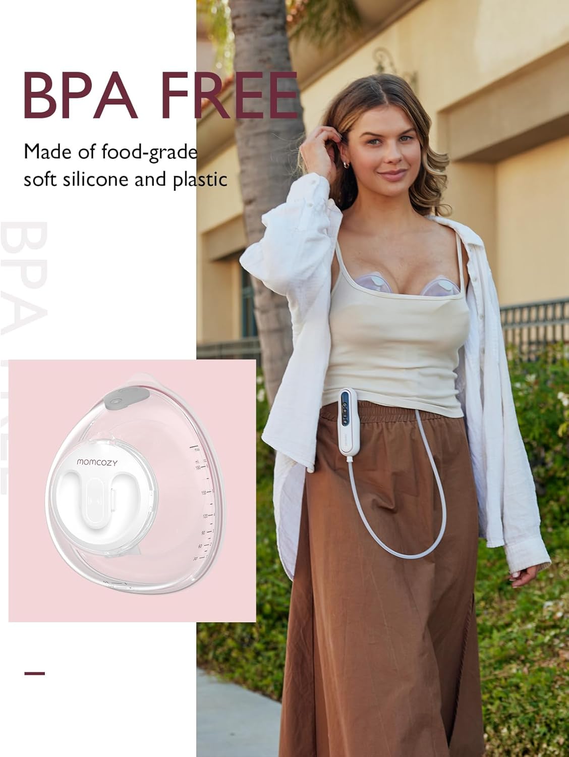 - Sem BPA, feito de material de silicone de grau alimentício. Todas as peças da bomba Momcozy que entram em contato com o leite materno são livres de BPA, dando a você tranquilidade sobre o leite do seu bebê.
