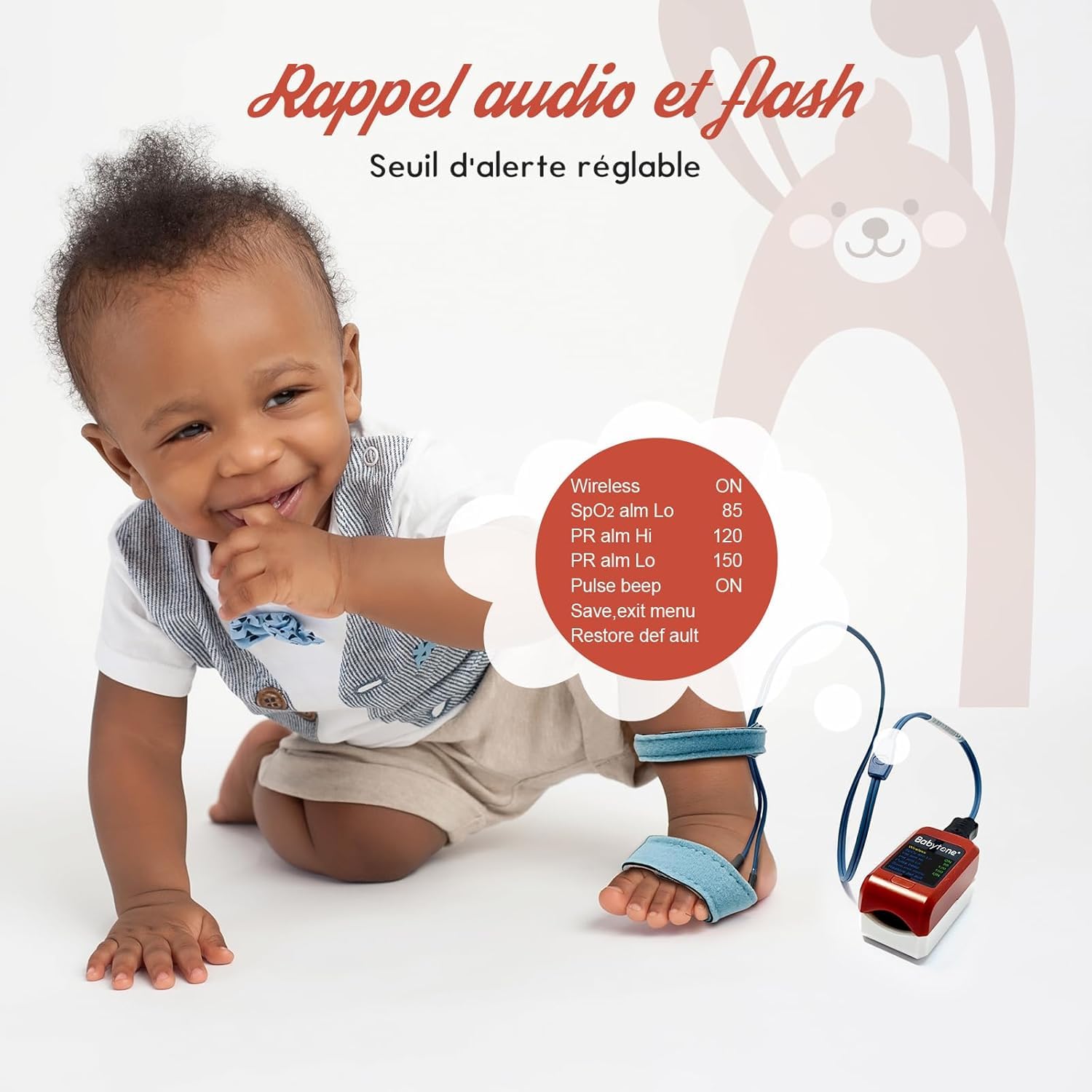 Monitor de oxigênio para bebês, oxímetro de pulso infantil com ponta do dedo que monitora SPO2 e frequência de pulso de adultos e crianças, monitor de O2 para os pés de crianças com lembrete de áudio, aplicativo gratuito e relatório para PC