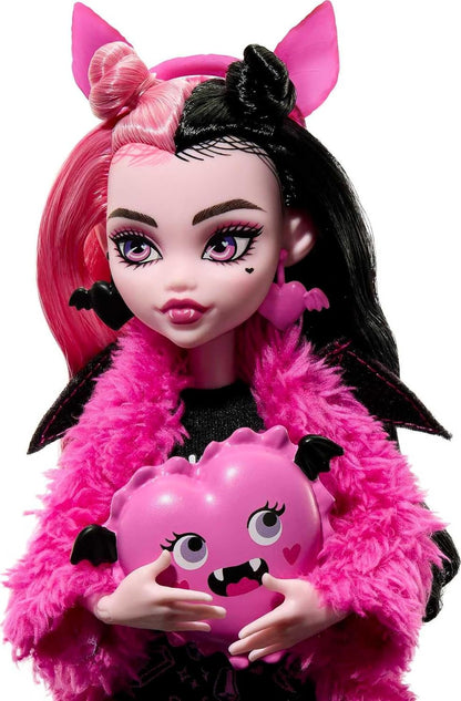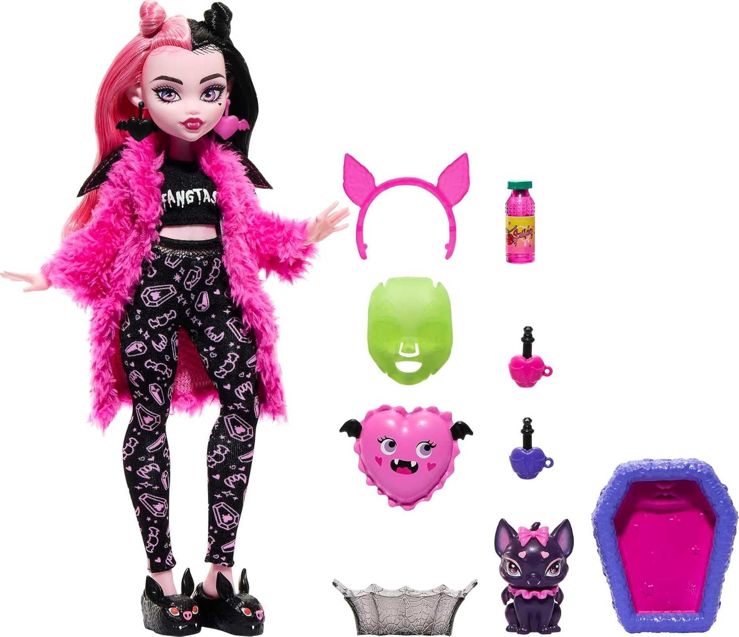 Monster High Boneca e acessórios para festa do pijama, boneca Draculaura Pet Bat Count Fabulous, festa Creepover, HKY66