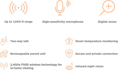 VISUALIZAÇÃO NOITE E ZOOM DIGITAL - O Monitor de Bebê com Vídeo para Berçário Motorola possui zoom digital e visão noturna infravermelha. O zoom digital permite que você amplie seu bebê, se necessário. A visão noturna infravermelha permite que você continue visualizando imagens mesmo quando as luzes estão apagadas.