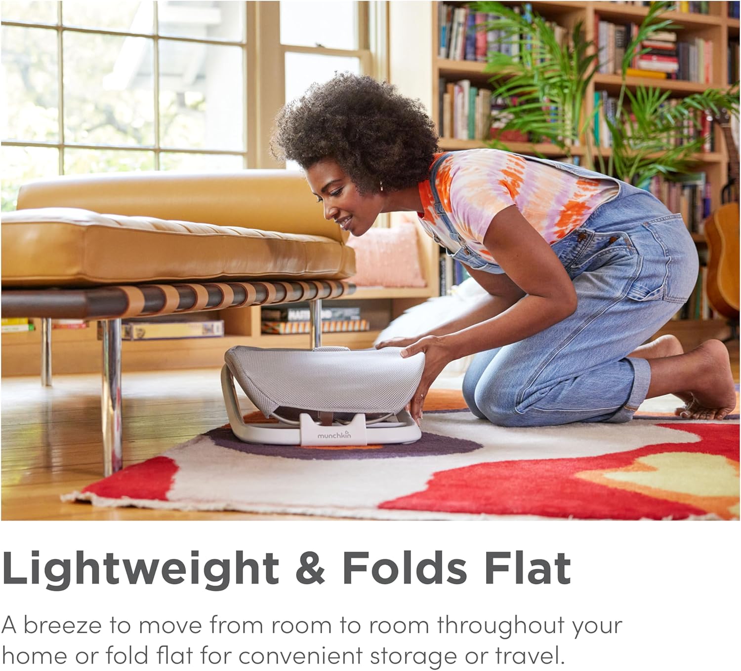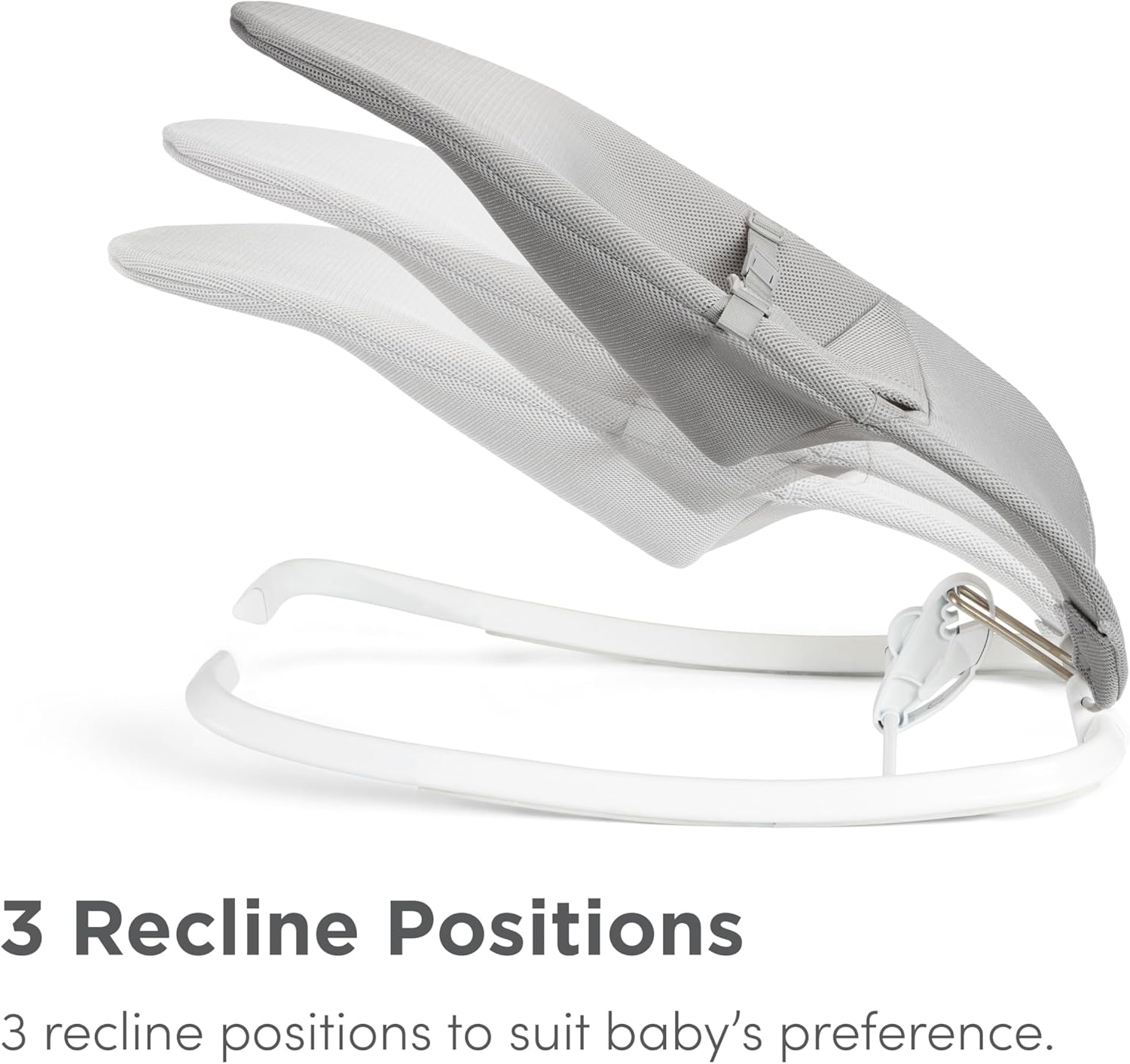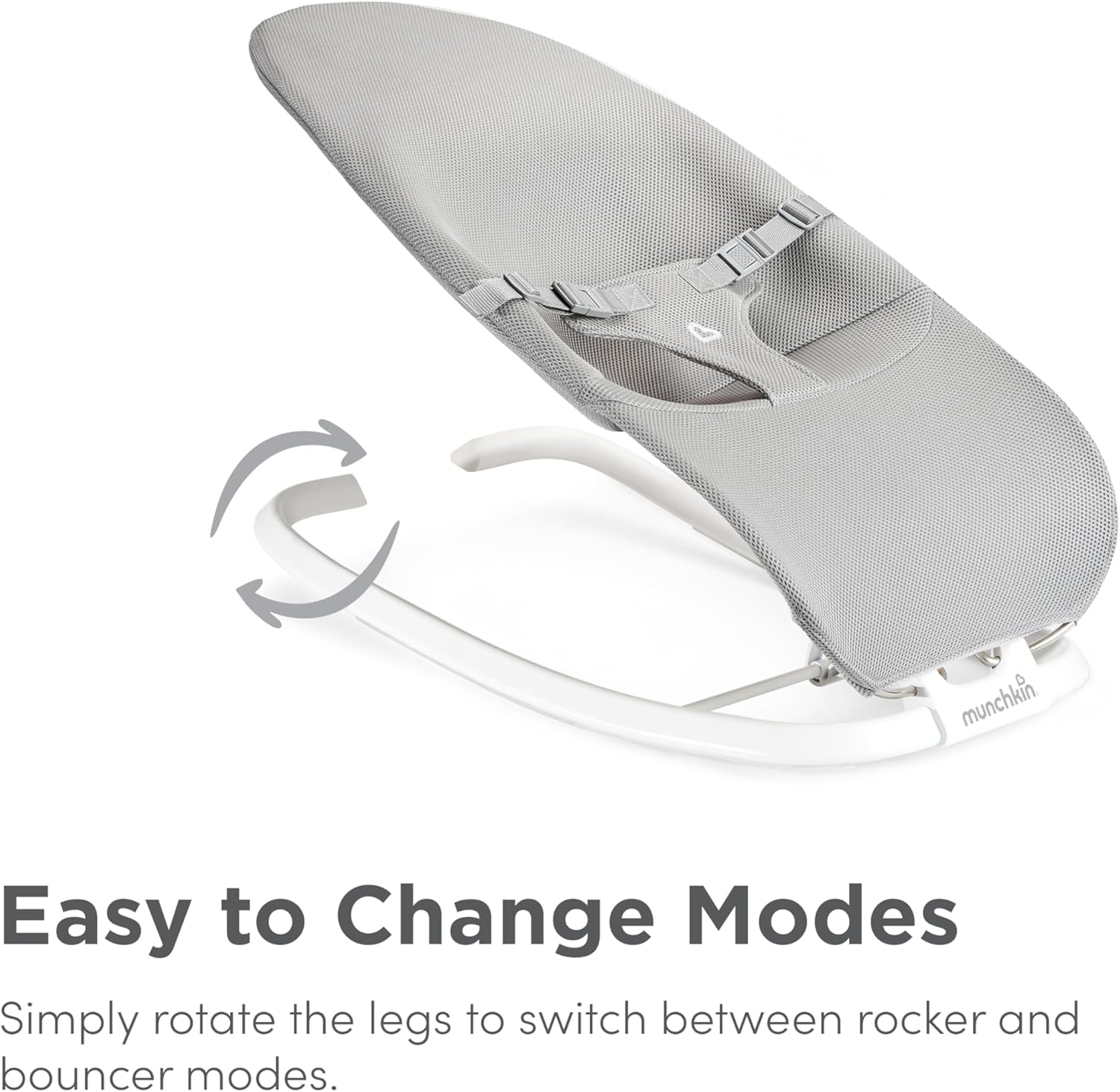 Munchkin 2 em 1 Spring Baby Bouncer Rocker - Balanço suave para bebês do nascimento aos 9 kg (20 lb). Balanço com 3 posições de reclinação, leve, dobrável para fácil armazenamento e transporte, cinza