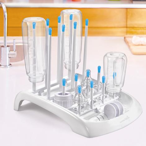 O Rack Dobrável Munchkin para secagem das mamadeiras é a chave para manter os acessórios de alimentação organizados e secos. Ele é projetado para segurar mamadeiras, bicos, discos de vedação, copos, canudos, válvulas e muito mais, com um design sutil e moderno que é esteticamente agradável.