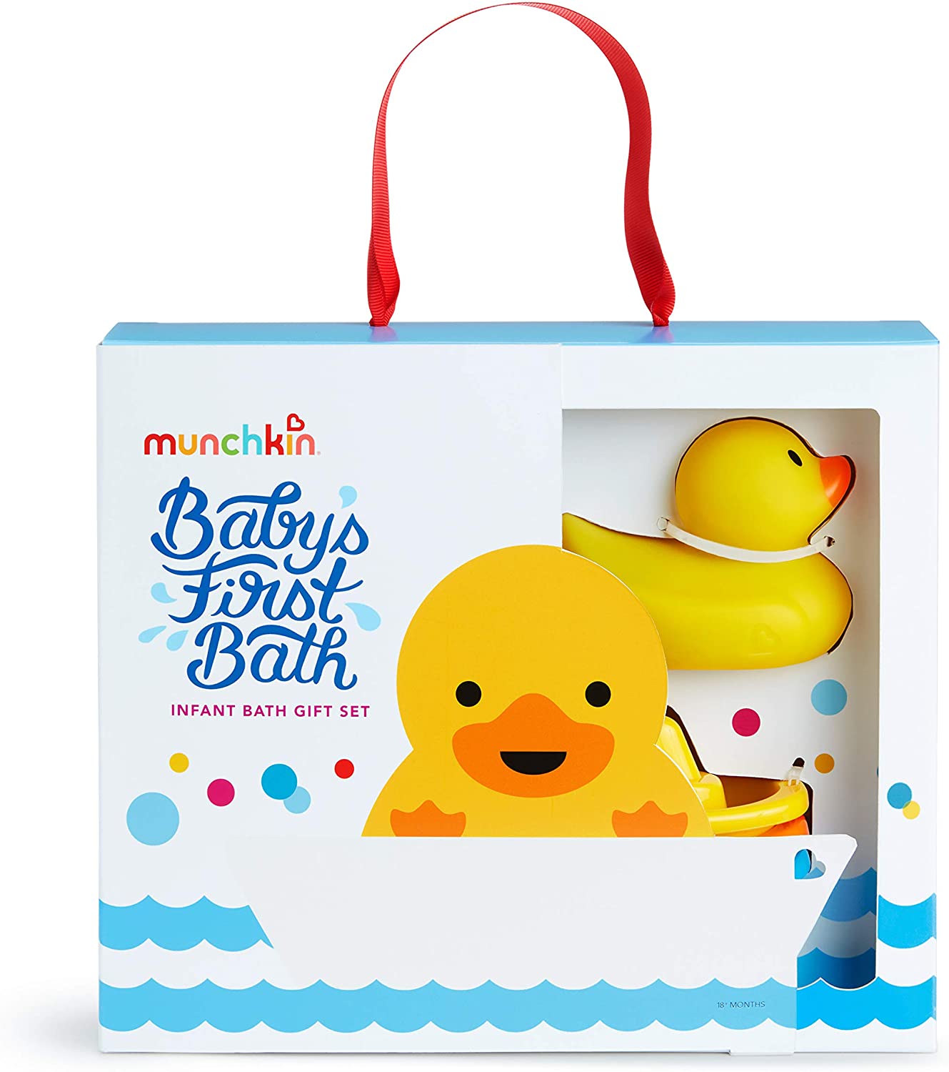 Rub-a-dub-dub, hora de se divertir na banheira! Surpreenda-se com três dos nossos brinquedos de banho favoritos no Conjunto de presentes para o primeiro banho do bebê. Selecionamos alguns de nossos produtos mais populares para escolhermos para os pais tudo o que precisam para uma vida mais feliz - e menos estressante! - rotina de banho.