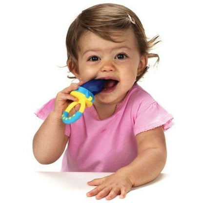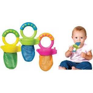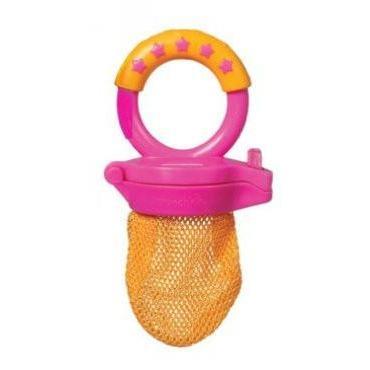 A rede mantém os pedaços de frutas dentro do alimentador e garante que o bebê não vai engasgar, alimentando-se somente das porções que ele conseguir esmagar.