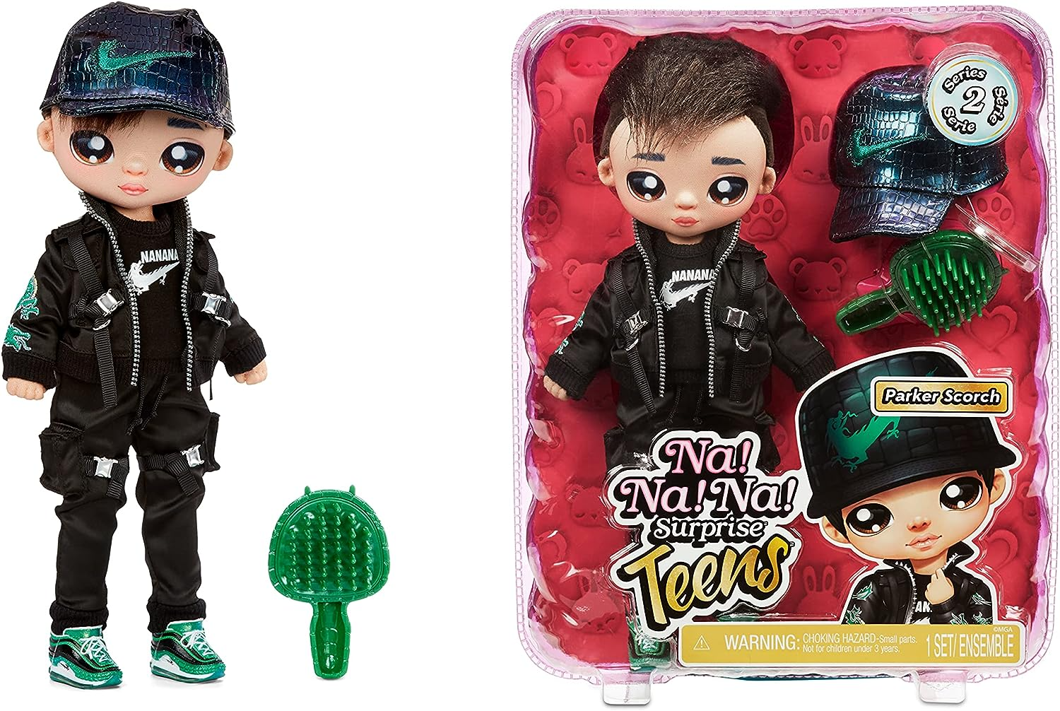 - NOVA SÉRIE 2 SOFT POSABLE 27,94 cm TEEN FASHION DOLL - Boneca masculina de 27,94 cm, Parker Scorch, com cabelo preto legal, rosto estampado e detalhes de roupas