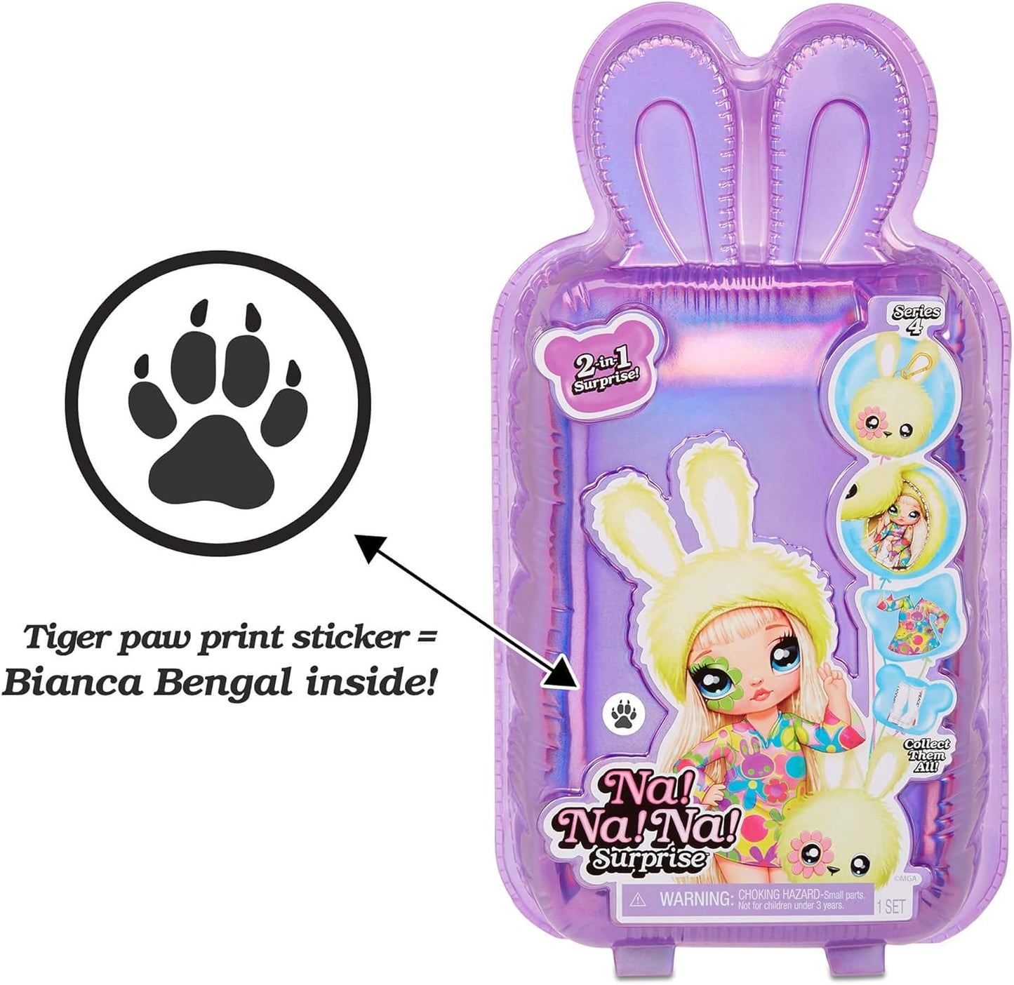Na Na Na Surprise Boneca fashion e bolsa de pelúcia 2 em 1 - Colecionável - Série 4 - Bianca Bengal