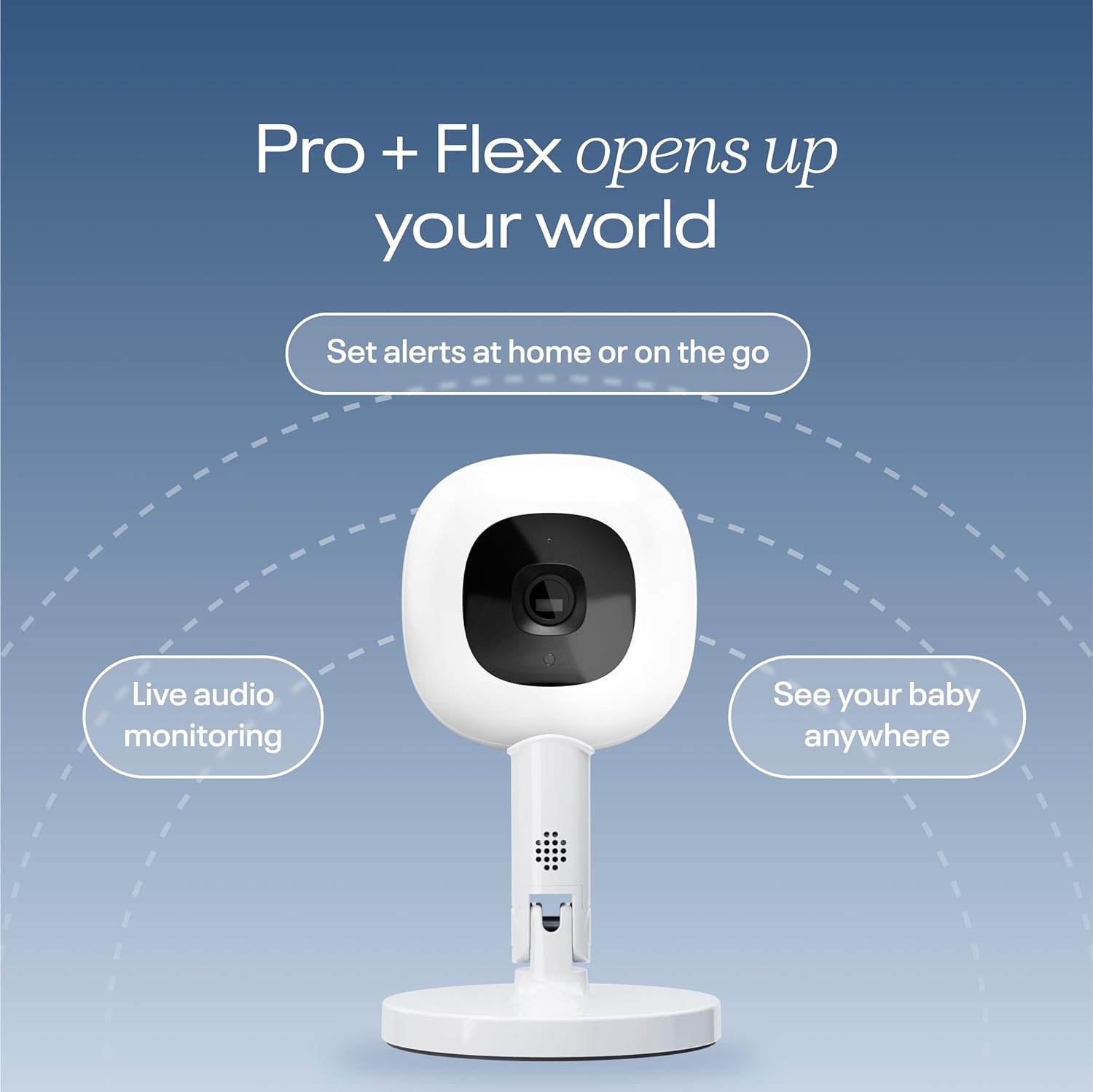 Nanit Monitor inteligente para bebê Pro 1080p HD e suporte Flex Duo, com tela dividida e função de zona de alerta, inclui faixa respiratória pequena, branca