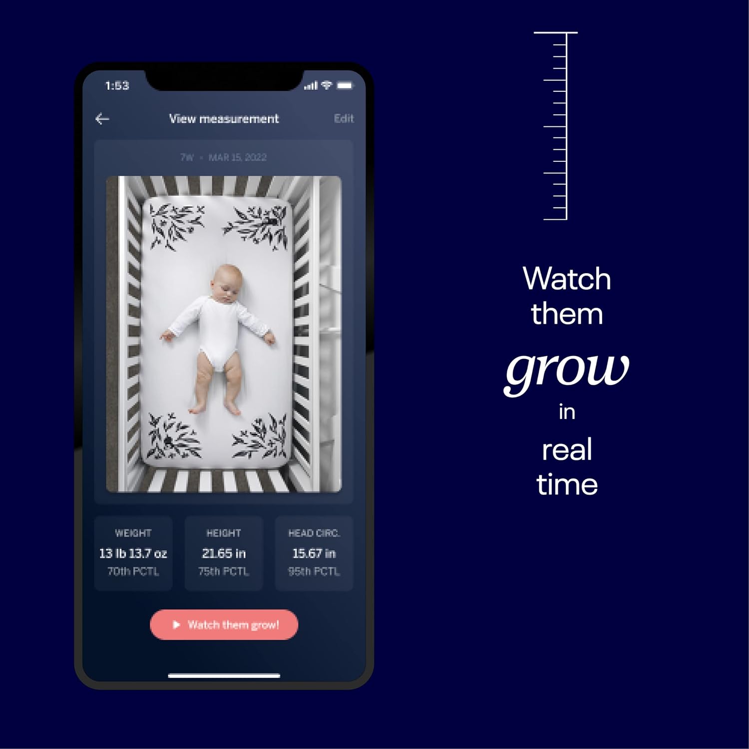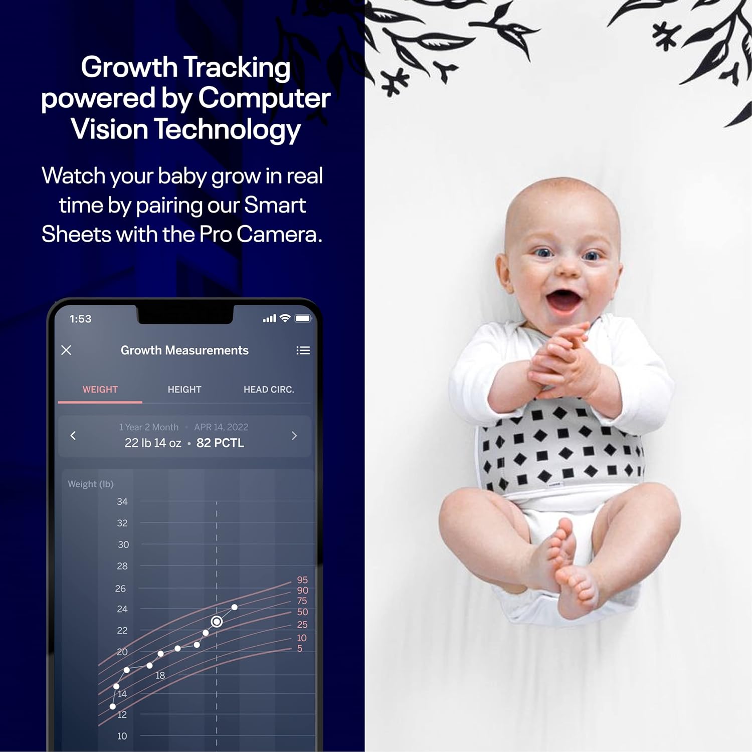 - Observe seu bebê crescer em tempo real emparelhando nossas folhas inteligentes Nanit com a câmera Nanit Pro. Coloque seu bebê no lençol e a câmera lê automaticamente o padrão personalizado para estimar as medidas do bebê