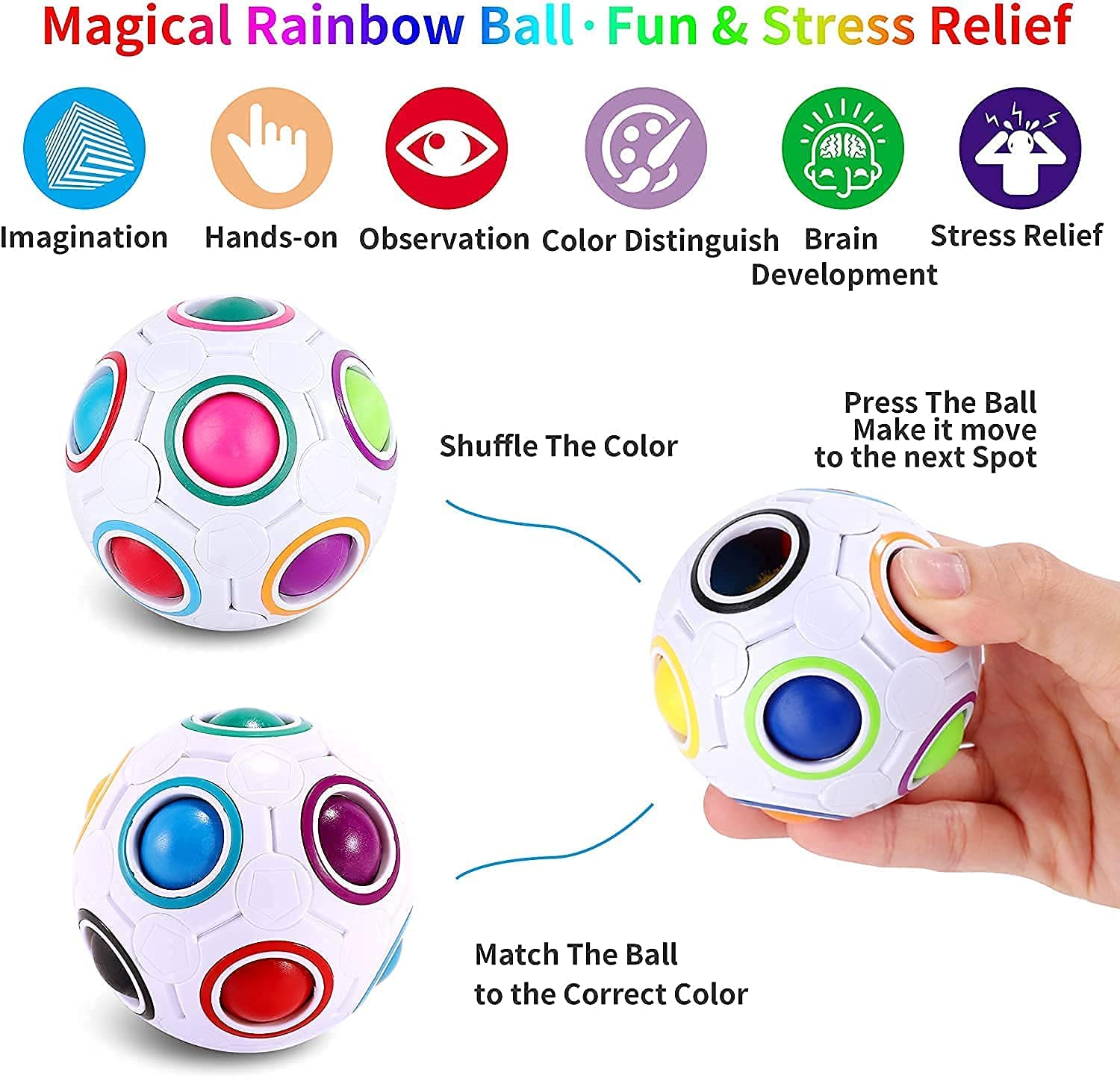 【Variedade Fidget Toys Bundle】 Este pacote sensorial completo inclui 1x Rainbow ball Magic Cube, 1x Wacky tracks, 1x bola de espuma de futebol americano, 1x Flippy bike chain fidget, 1x Snake Cube Twist Puzzles, 1x Rainbow Push Bubble Pop Toy, 2x Squeeze soja , 2x Fidget Simple Dimple Toy, 2x Mini Dedo Skateboard, 2x Puzzle balls, 4 x Mesh and Marble Sensory Toys, 4x KAWAII Mochi Squishy Toys, 6x Stretchy strings.