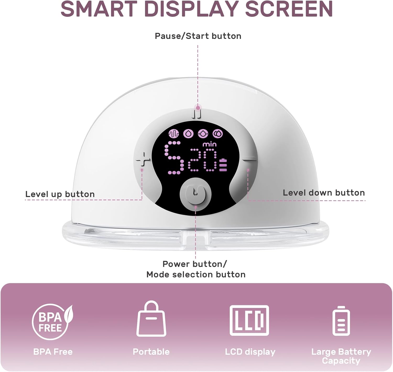 - Bombeamento Livre: A bomba tira-leite vestível é leve e pequena. Ela é mais invisível quando usada no sutiã. Não se preocupe em acordar o bebê ou chamar a atenção de alguém, pois é muito silenciosa ao bombear. Perfeita para as mães usarem ao trabalhar, dirigir, viajar...