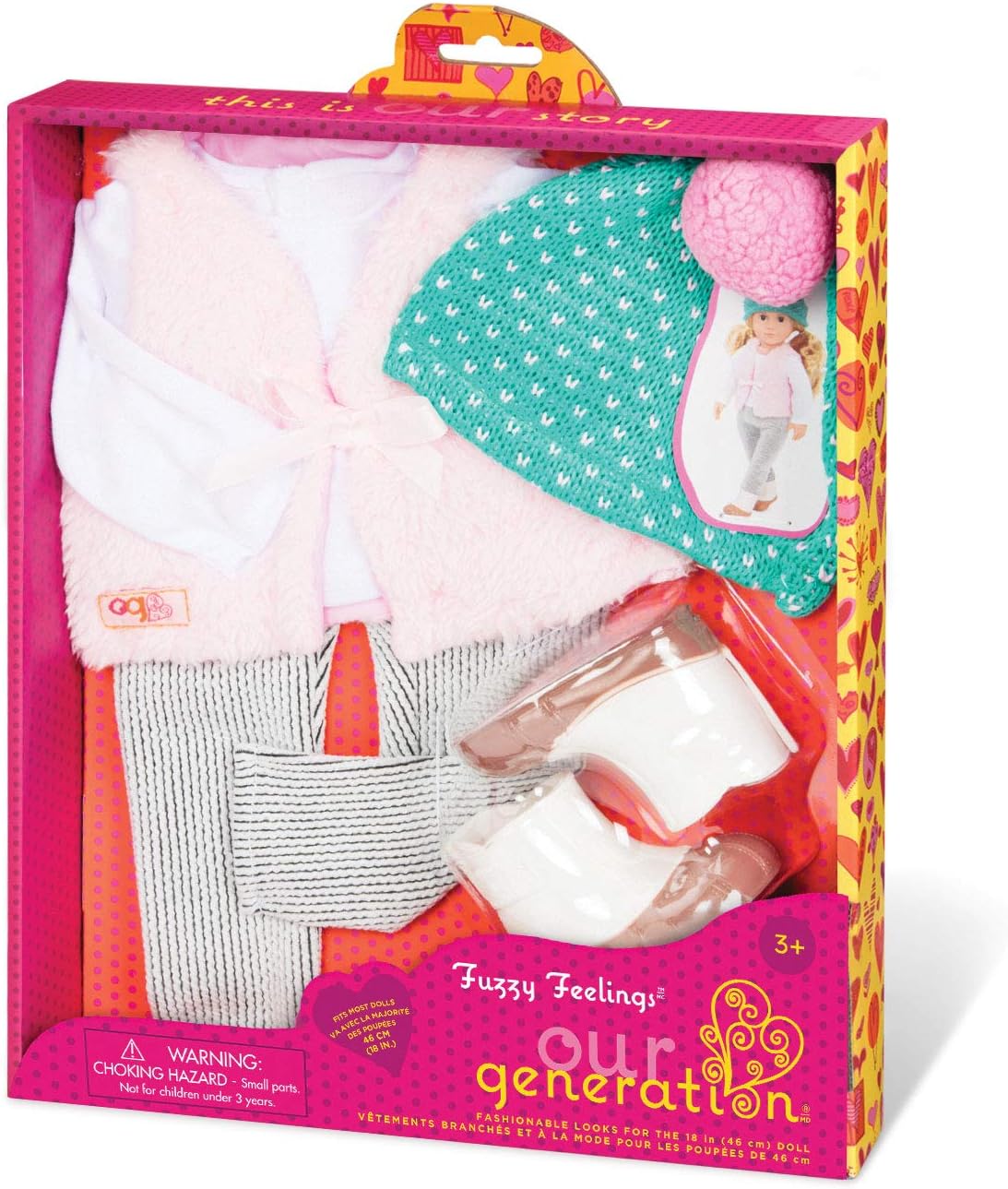 Nossa Geração Fuzzy Feelings Outfit – Roupa aconchegante para o frio para bonecas fashion de 18 polegadas – Conjunto de 5 peças para atividades ao ar livre