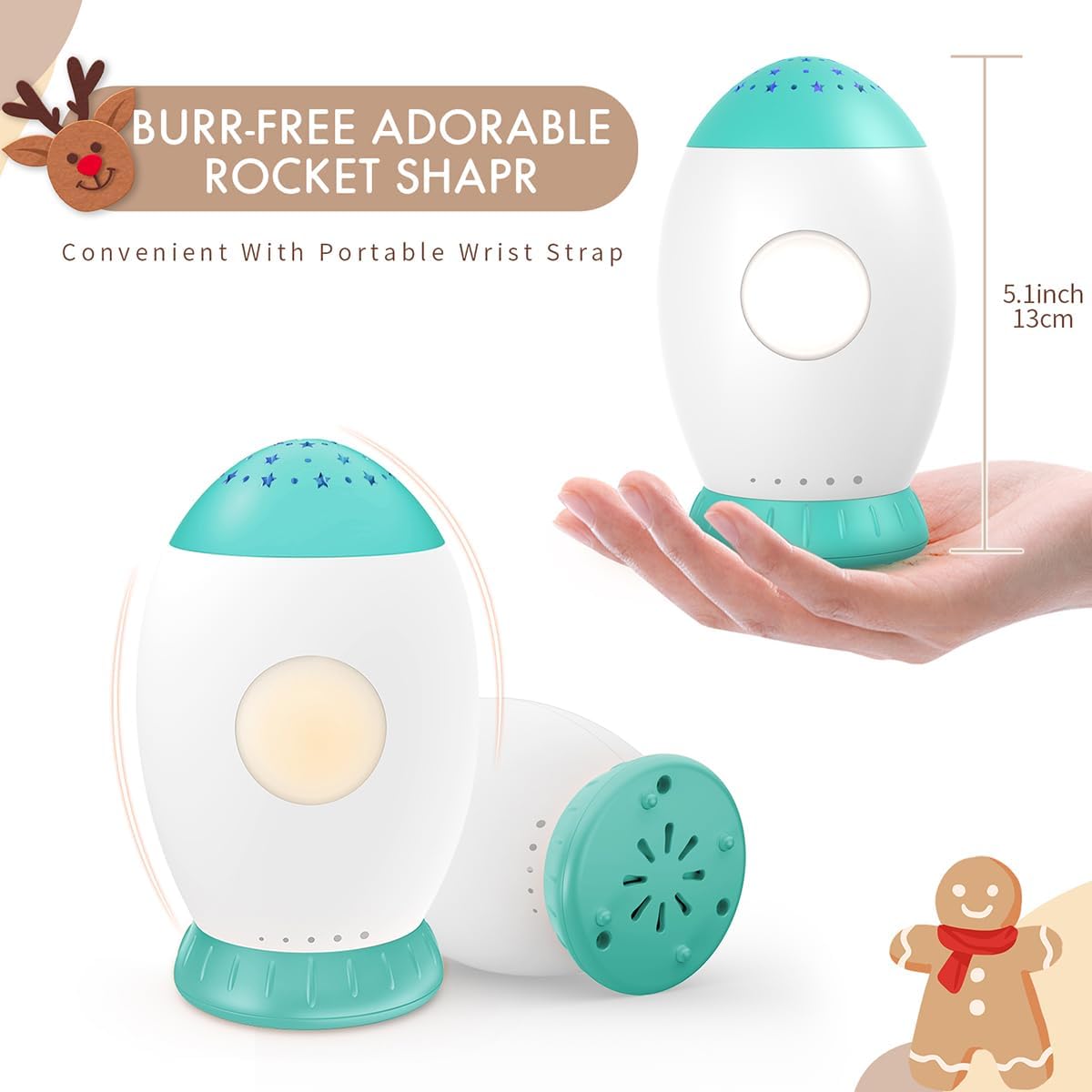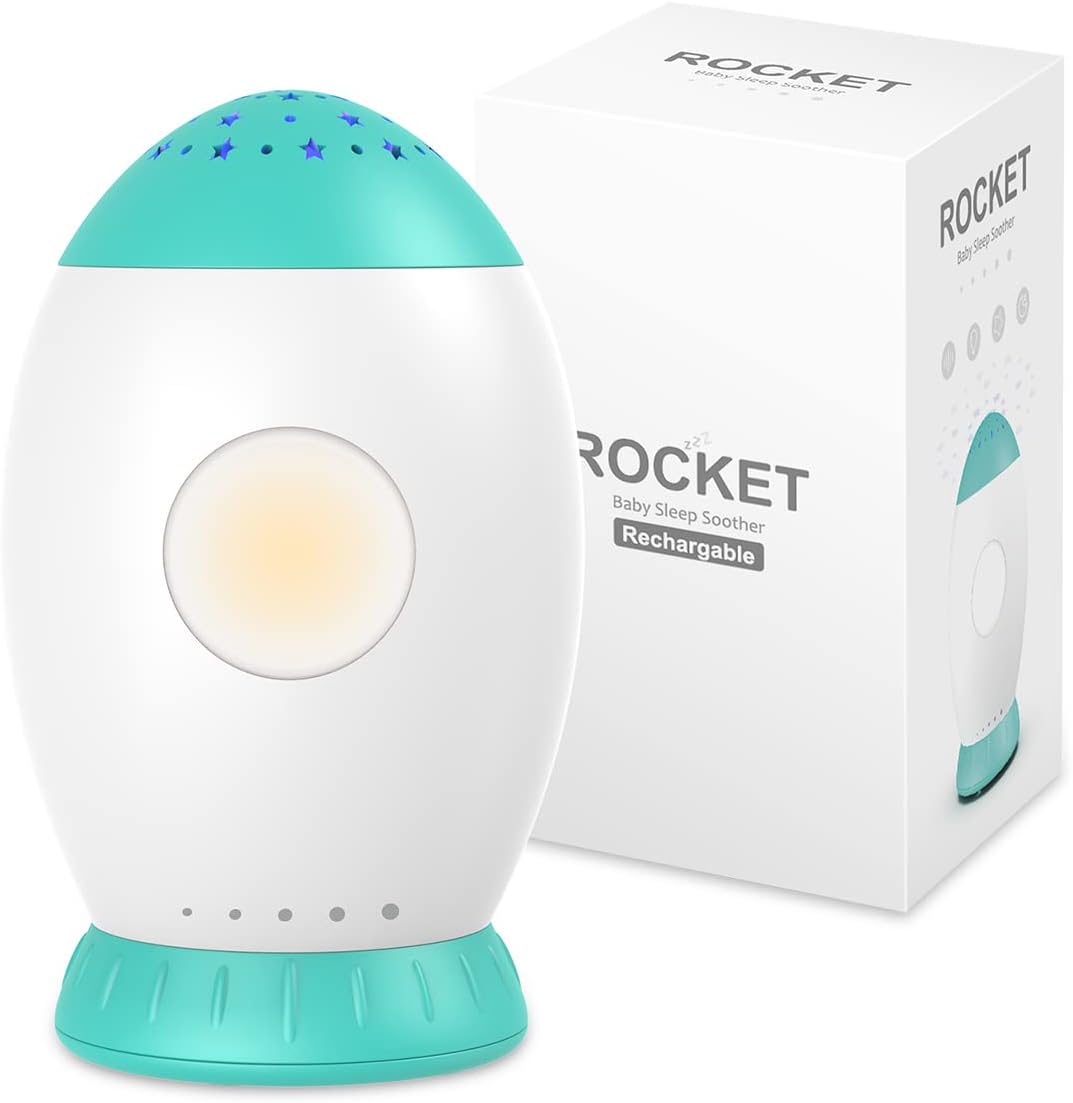 - 【Chupeta multifuncional para dormir para bebês】Esta chupeta para dormir para bebês não é apenas um projetor de estrelas, que criará efeitos de projeção incríveis, mas também uma luz noturna para crianças com som suave. O lindo formato de foguete atrai a atenção do bebê. E é leve e portátil para uso doméstico e em viagens. Feito de material de alta qualidade, bordas arredondadas lisas e sem rebarbas, durável e seguro o suficiente para o bebê usar.