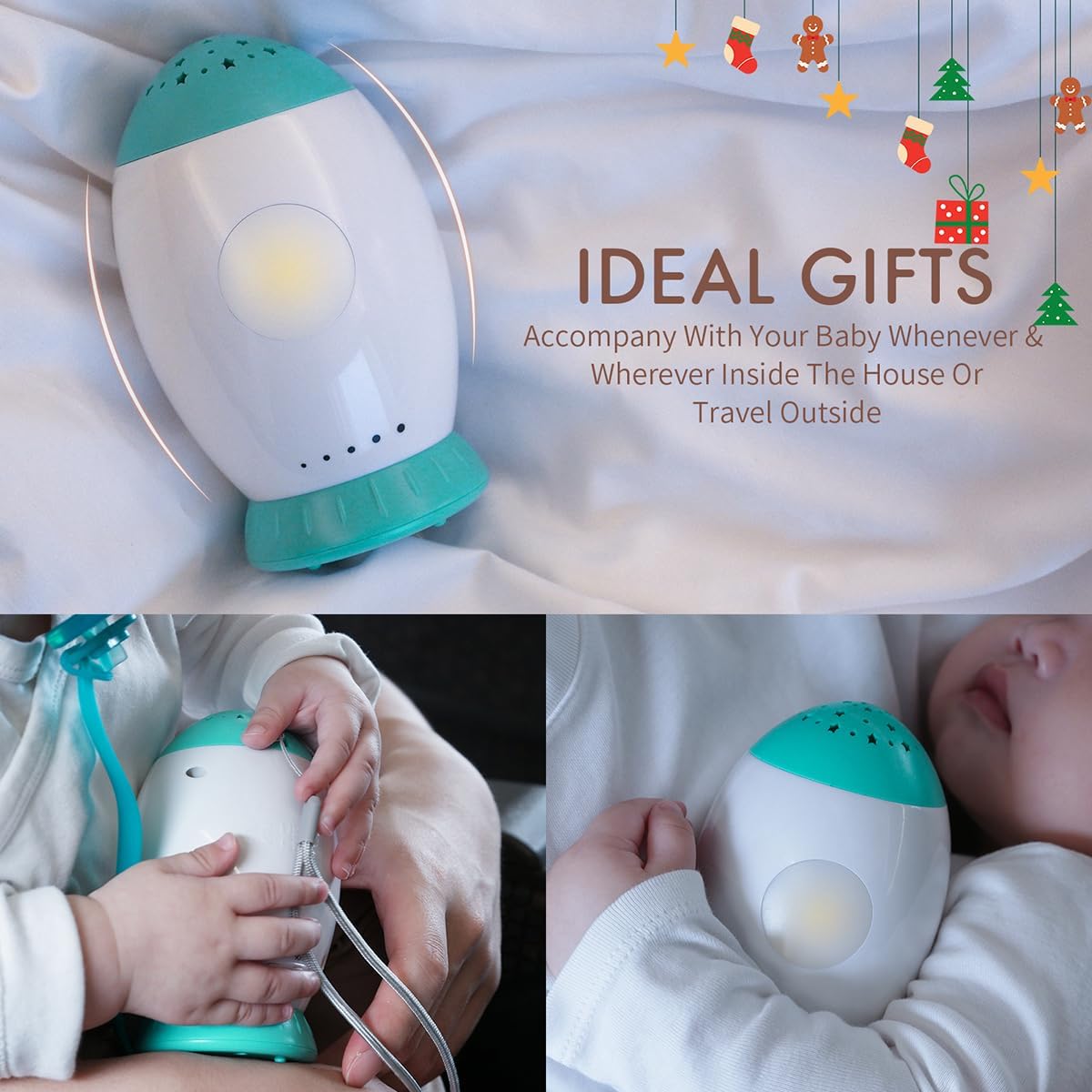 Nueplay Chupeta para dormir de bebê com canções de ninar e ruídos brancos, projetor estrela para decoração de quarto infantil, luzes noturnas de berçário de bebê, máquina de som portátil para crianças, itens essenciais para bebês para meninos e meninas