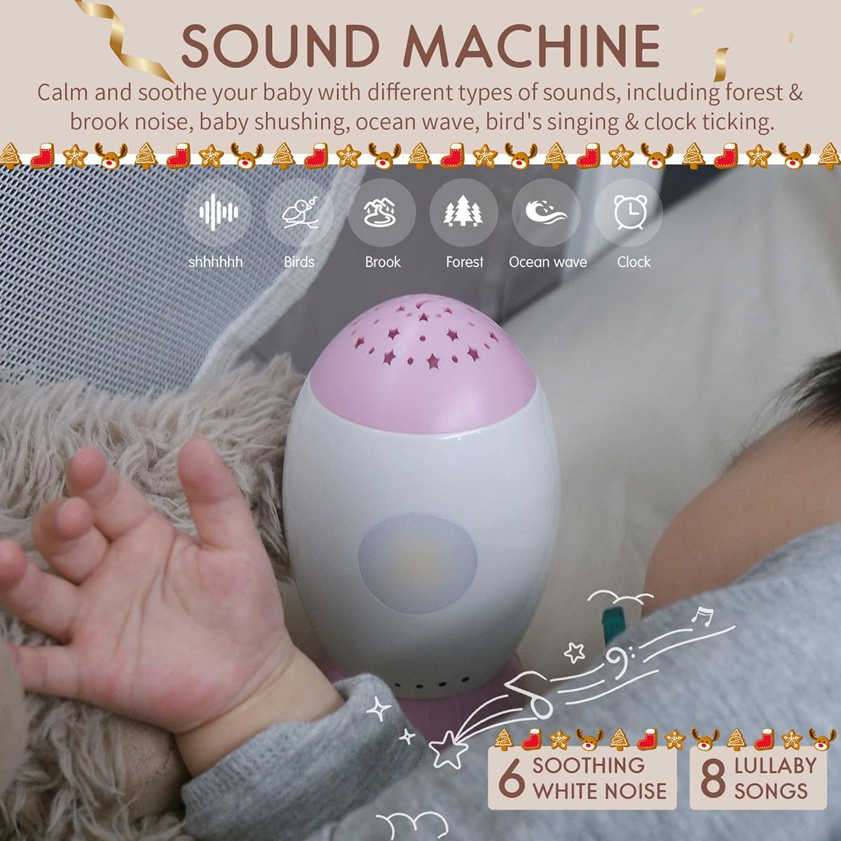 Nueplay Chupeta para dormir de bebê com canções de ninar e ruídos brancos, projetor estrela para decoração de quarto infantil, luzes noturnas de berçário de bebê, máquina de som portátil para crianças pequenas, itens essenciais para bebês para