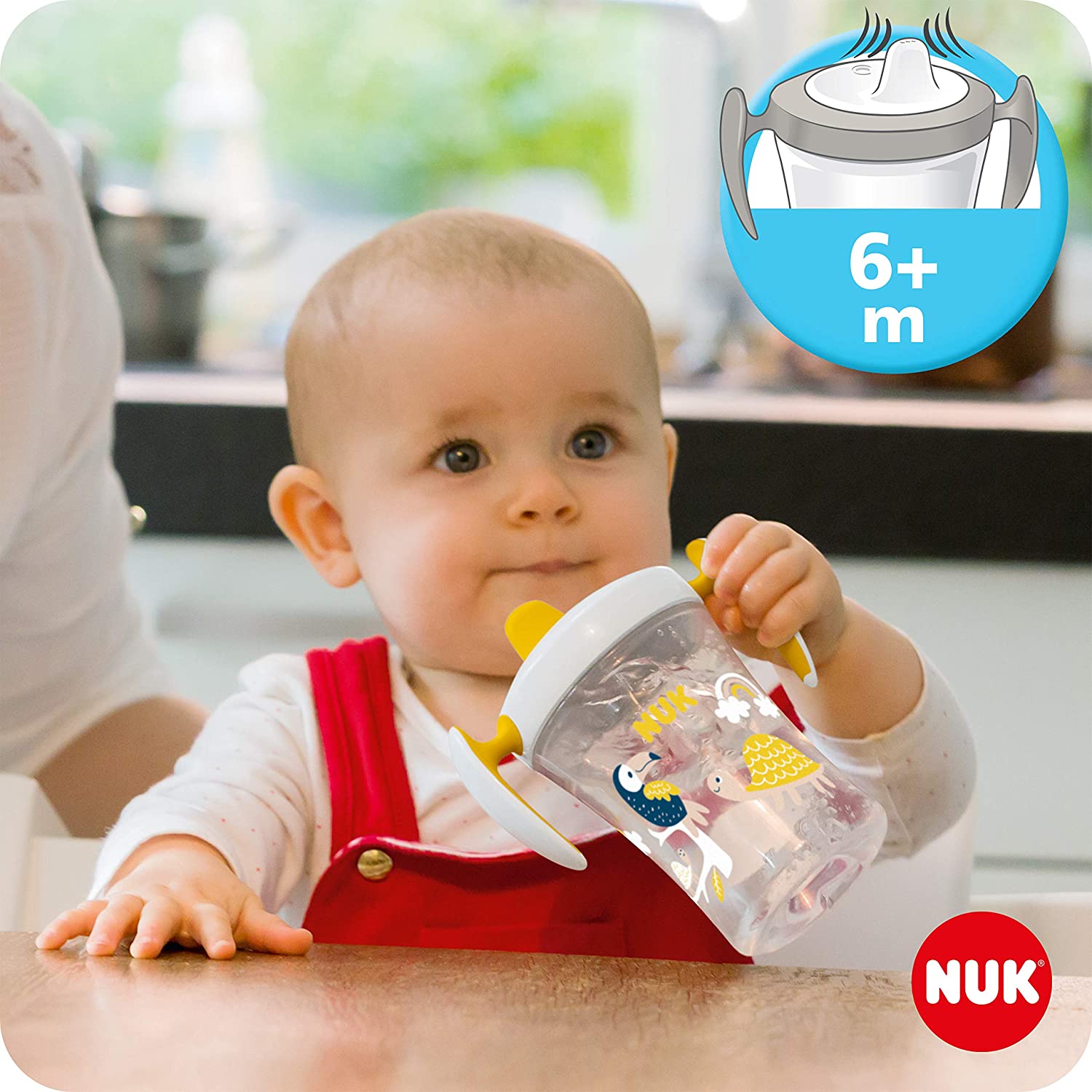 Copo Trainer (6m +): bico macio e à prova de vazamentos é suave para as gengivas e facilita a transição da garrafa para o copo; Alças ergonômicas permitem fácil manuseio