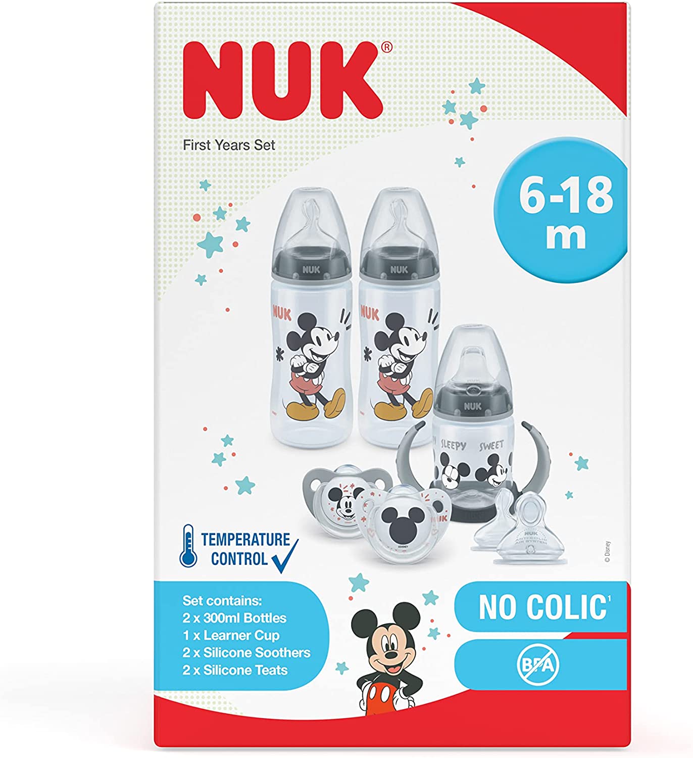 Nuk Disney Kit de Mamadeiras, Copo de Treinamento e Chupetas - 7 itens