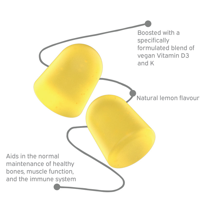 Esta goma de mascar possui uma fórmula de dupla ação que inclui 1000 UI de vitamina D3 vegana e 80 µg de vitamina K2 (MK-7) por porção. Ideal para quem procura um suplemento de goma que seja adequado à dieta ou ao estilo de vida, com uma dosagem de qualidade de vitamina D sem quaisquer subprodutos de origem animal.