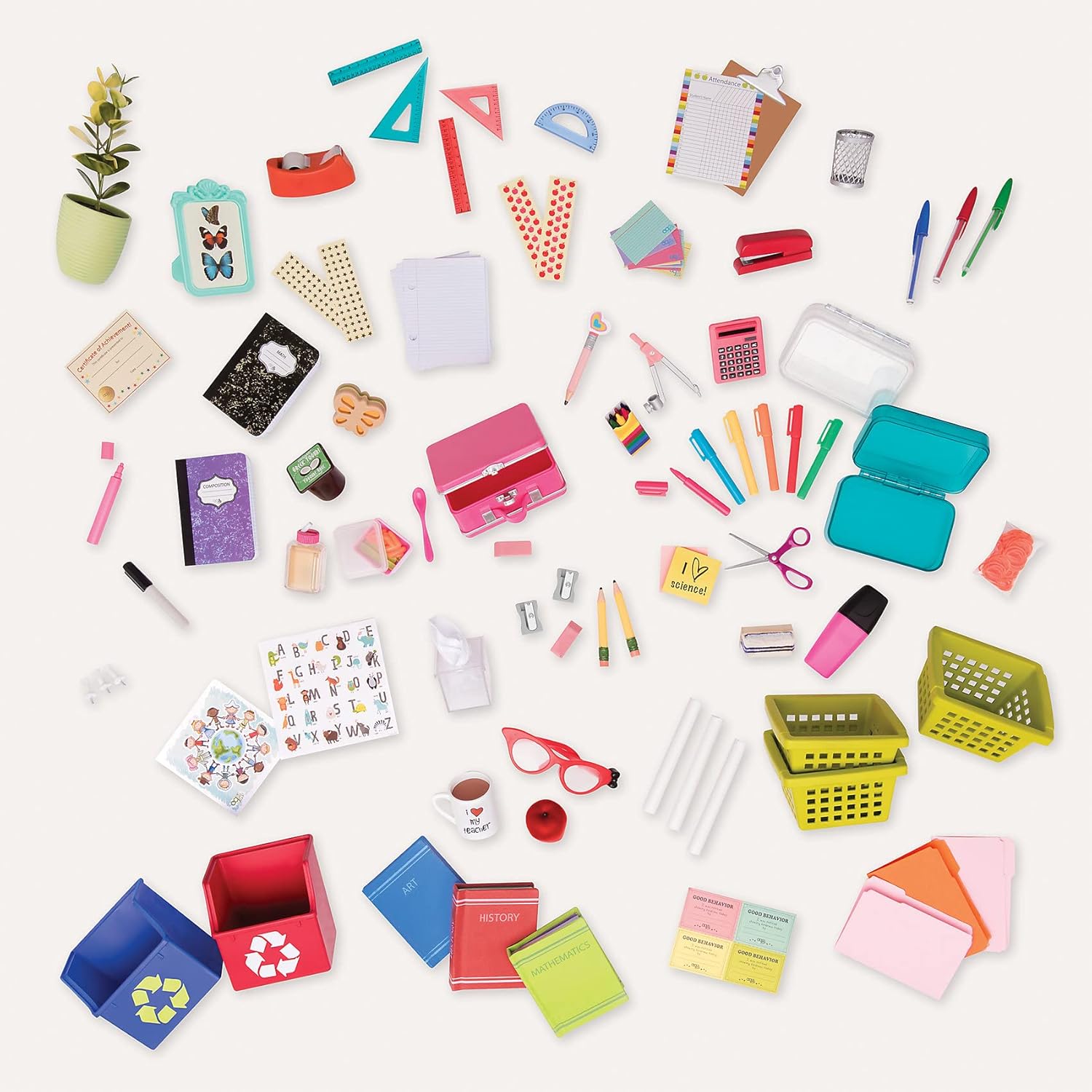 - Conjunto de acessórios escolares com 76 peças para bonecas de 45 cm