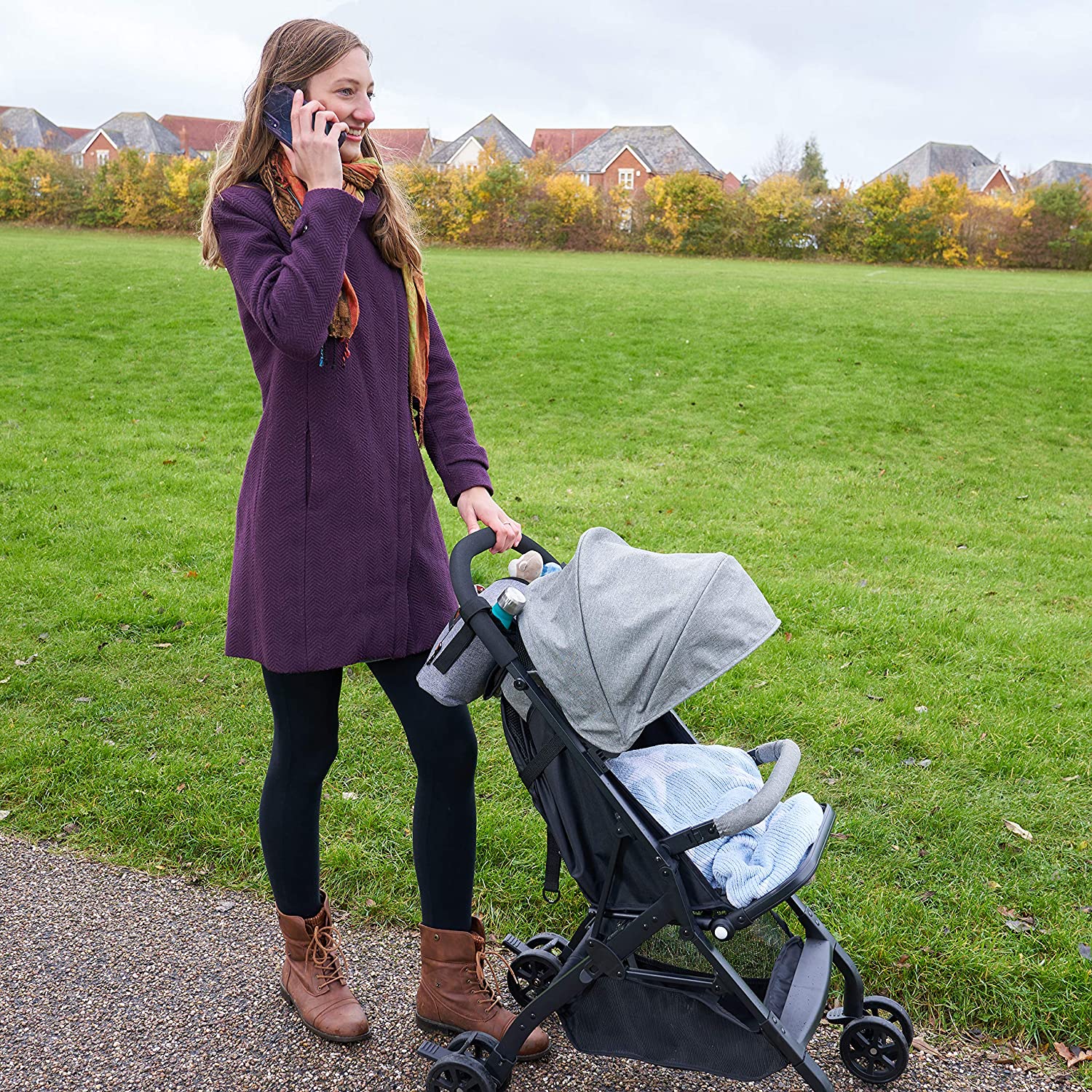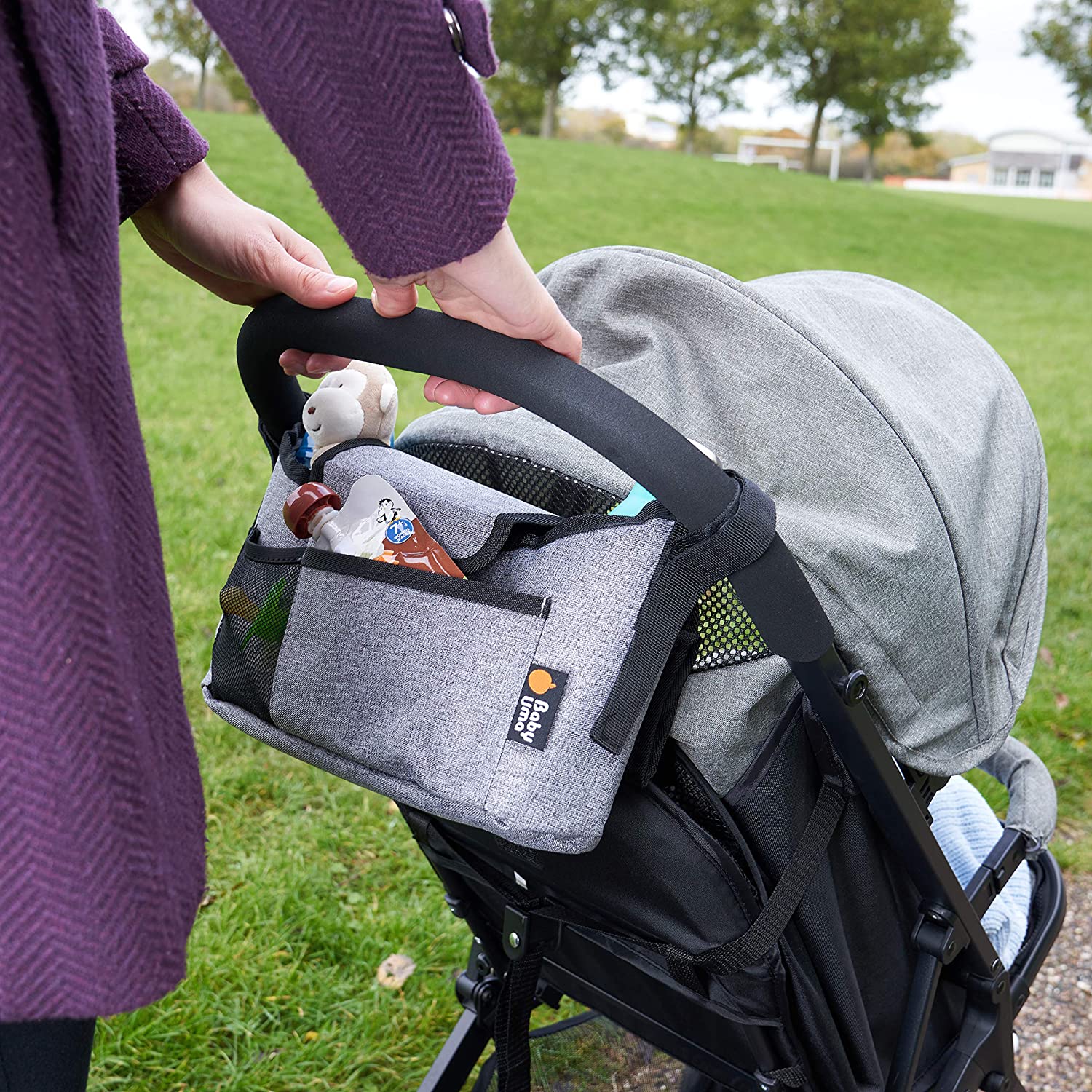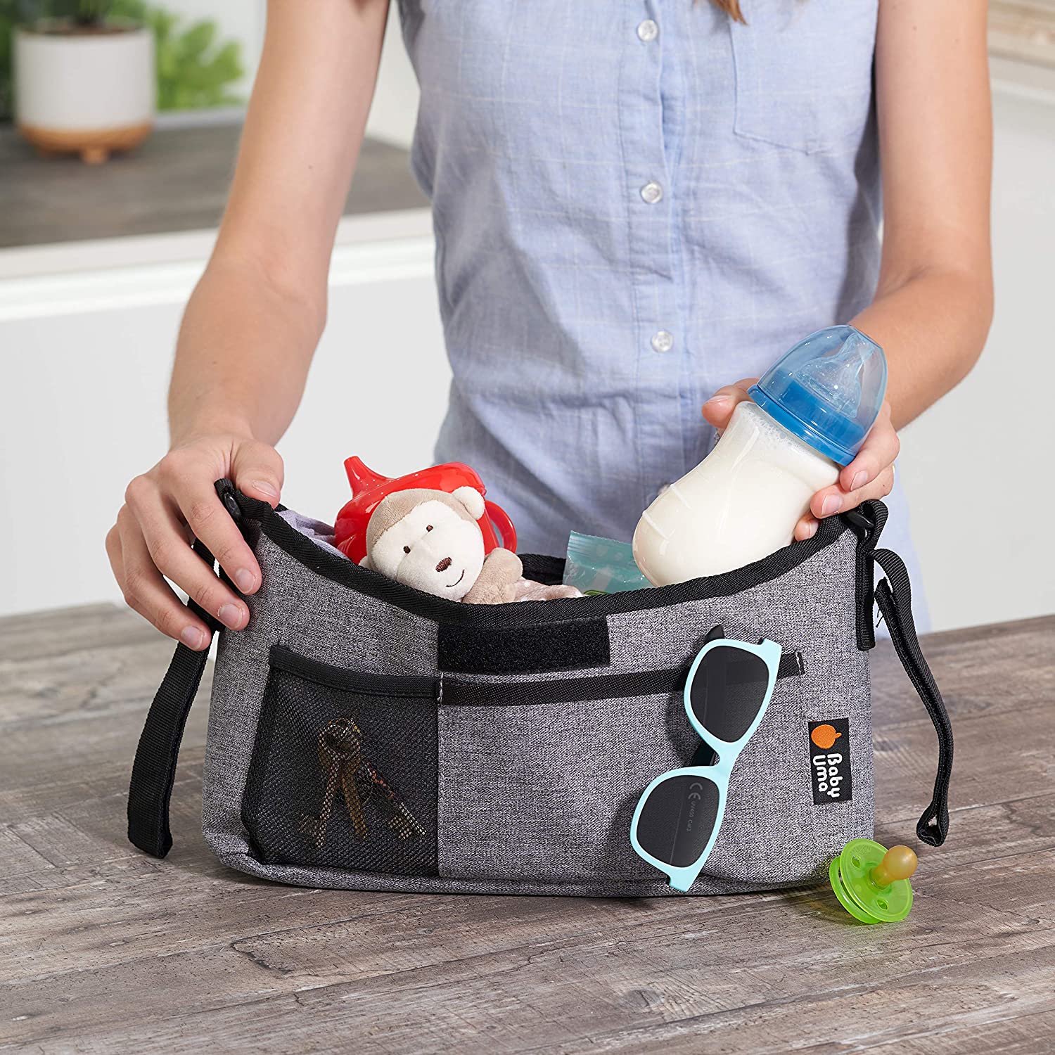 Ordem, Ordem - Há um compartimento para tudo. Bolsos frontais para o seu telemóvel, chaves e cartões. O compartimento principal aberto tem espaço suficiente para o brinquedo favorito do bebê, lanches e lenços umedecidos. Os suportes para bebidas no interior são extra profundos para evitar derramamentos e podem facilmente segurar a próxima mamada do bebê ou sua dose de café da manhã, ganhando para vocês dois. O prático bolso de malha na parte de trás é perfeito para fraldas ou roupas de bebê molhadas.