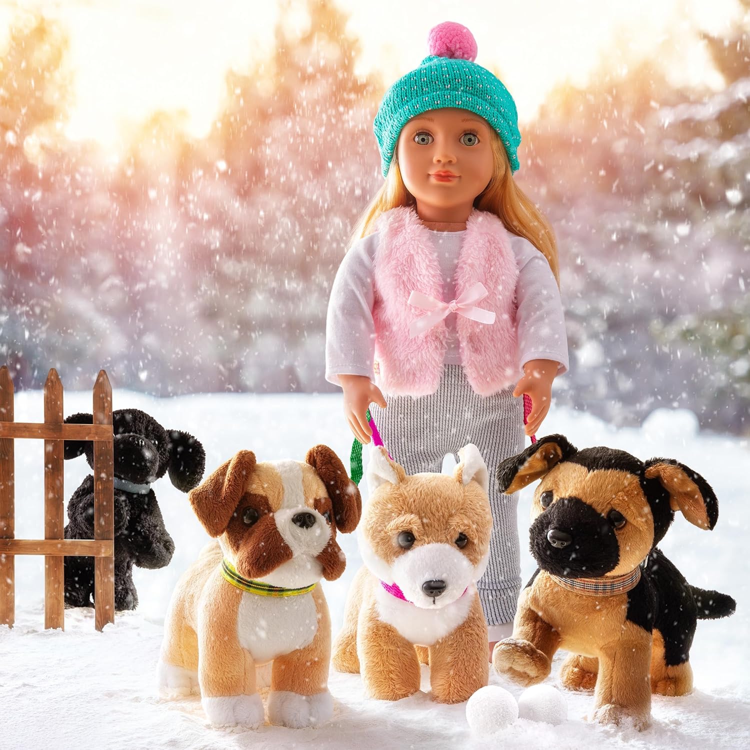 Our Generation de filhote de pastor alemão - filhote de pelúcia articulável de 6 polegadas para bonecas de 18 polegadas - inclui coleira e trela