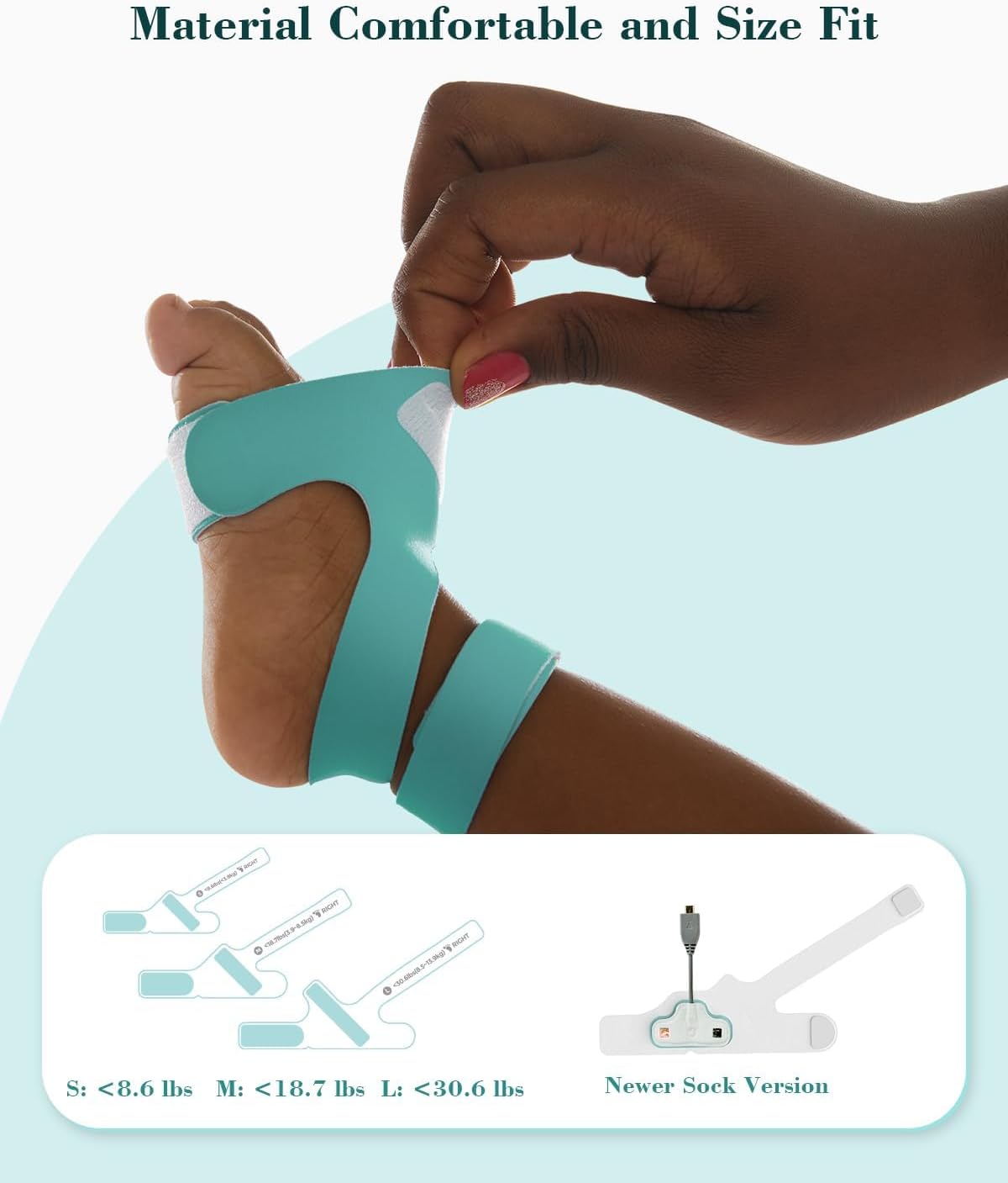Oxímetro de pulso BabyO2 S2 para bebês, monitor de meia para dormir com estação base, monitoramento de saturação de oxigênio O2 em tempo real, frequência cardíaca, oxímetro para crianças de 0 a 3 anos