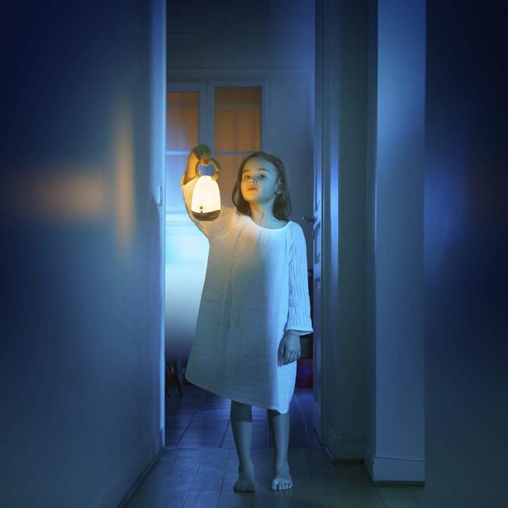 O Pabobo Lumiblo é mágico. Liga e desliga com um simples golpe. Quando você localiza o sensor de golpe estelar na base do Lumiblo, a diversão realmente começa. Você pode ligar e desligar a lanterna com um golpe curto na estrela, bem como controlar a intensidade da luz com um golpe longo no sensor. Ter acesso a uma lanterna é a forma perfeita de tranquilizar as crianças na hora de dormir, além de permitir que se orientem no escuro. Os mais pequenos beneficiam da luz suave que a lanterna emite, bem como da comodidade de pegá-la caso queiram mover-se com segurança no escuro. Também é útil para os pais que desejam cuidar dos filhos ou enfrentar o turno da alimentação noturna sem sensibilizar demais o pequeno. A Lumiblo é uma lanterna tátil, fácil de movimentar, com uma prática alça que funciona como forma de prender a Lumiblo em uma porta ou até mesmo em um cinto. No modo contínuo, a luz noturna brilha suavemente durante uma hora. Recarregável, o Lumbilo brilha até uma semana com uma única carga – oferece ciclos 24x de 1 hora.