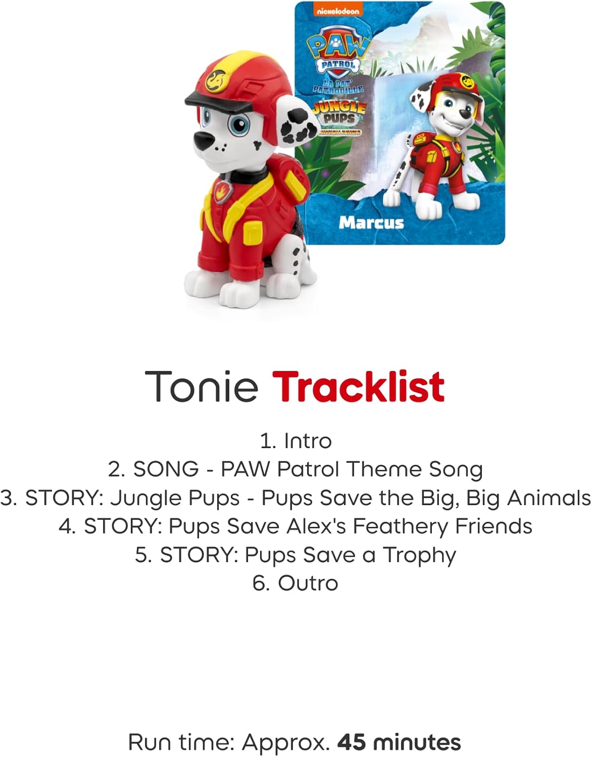 - Junte-se a Chase, Marshall e Skye em resgates ousados, vulcões e ação em altos voos. Lembrem-se, filhotes: nossos Tonies da Patrulha Canina só funcionam quando combinados com um Toniebox.