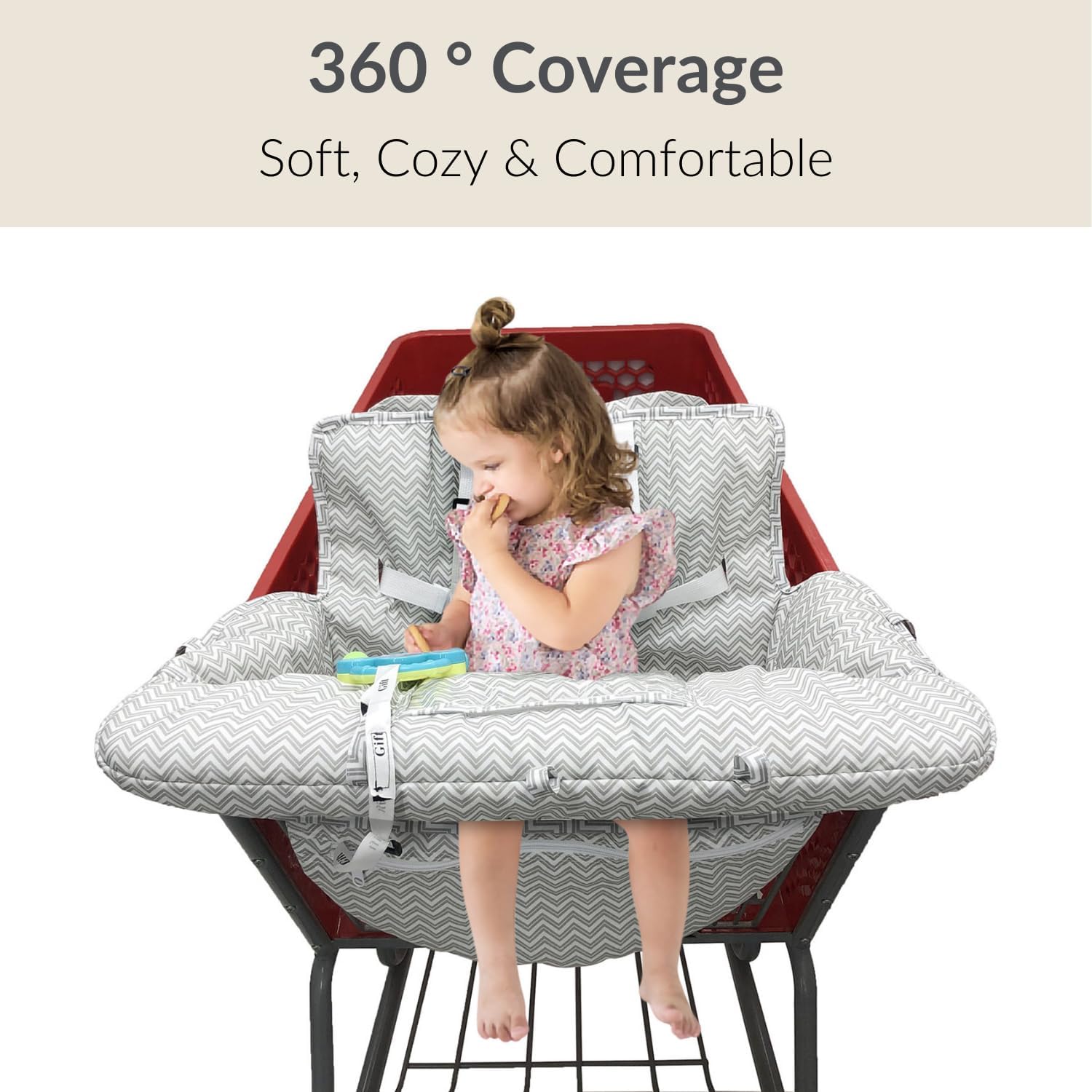 PandaEar Capa para Carrinho de Compras para Bebê, 2 em 1: Capa para Carrinho de Compras e Capa para Cadeirão de Bebê - Cinza