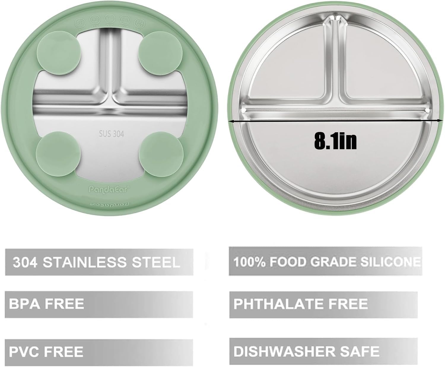 - Material de aço inoxidável seguro e durável: Fabricados em aço inoxidável 304 de alta qualidade, próprio para alimentos, com revestimento de silicone livre de BPA, nossos pratos de sucção para bebês garantem uma experiência de alimentação segura, higiênica e duradoura. Resistentes a manchas, odores e corrosão, são feitos para durar no uso diário.