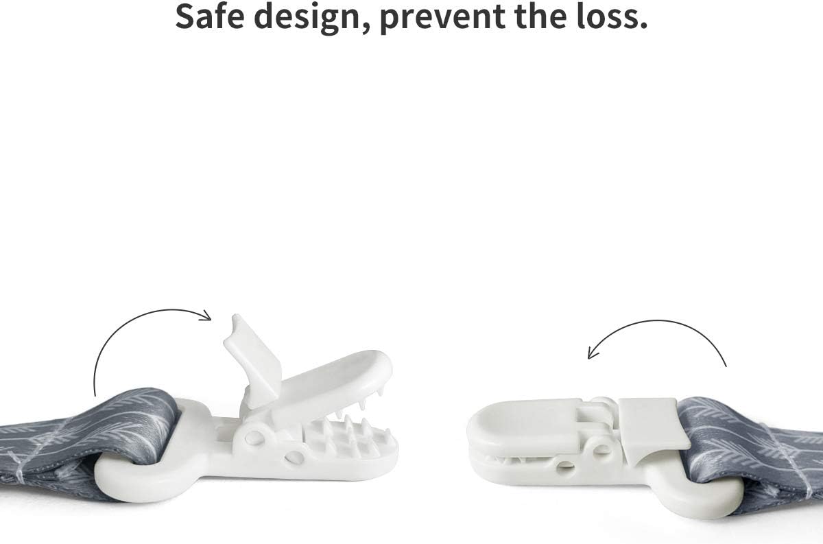 - [ALÇA CURTA] - Nosso prendedor de chupeta é feito mais curto por motivos de segurança e higiene. Prendedores mais curtos não apenas eliminam o risco de estrangulamento, mas também ajudam o bebê a evitar que a chupeta arraste no chão sujo.