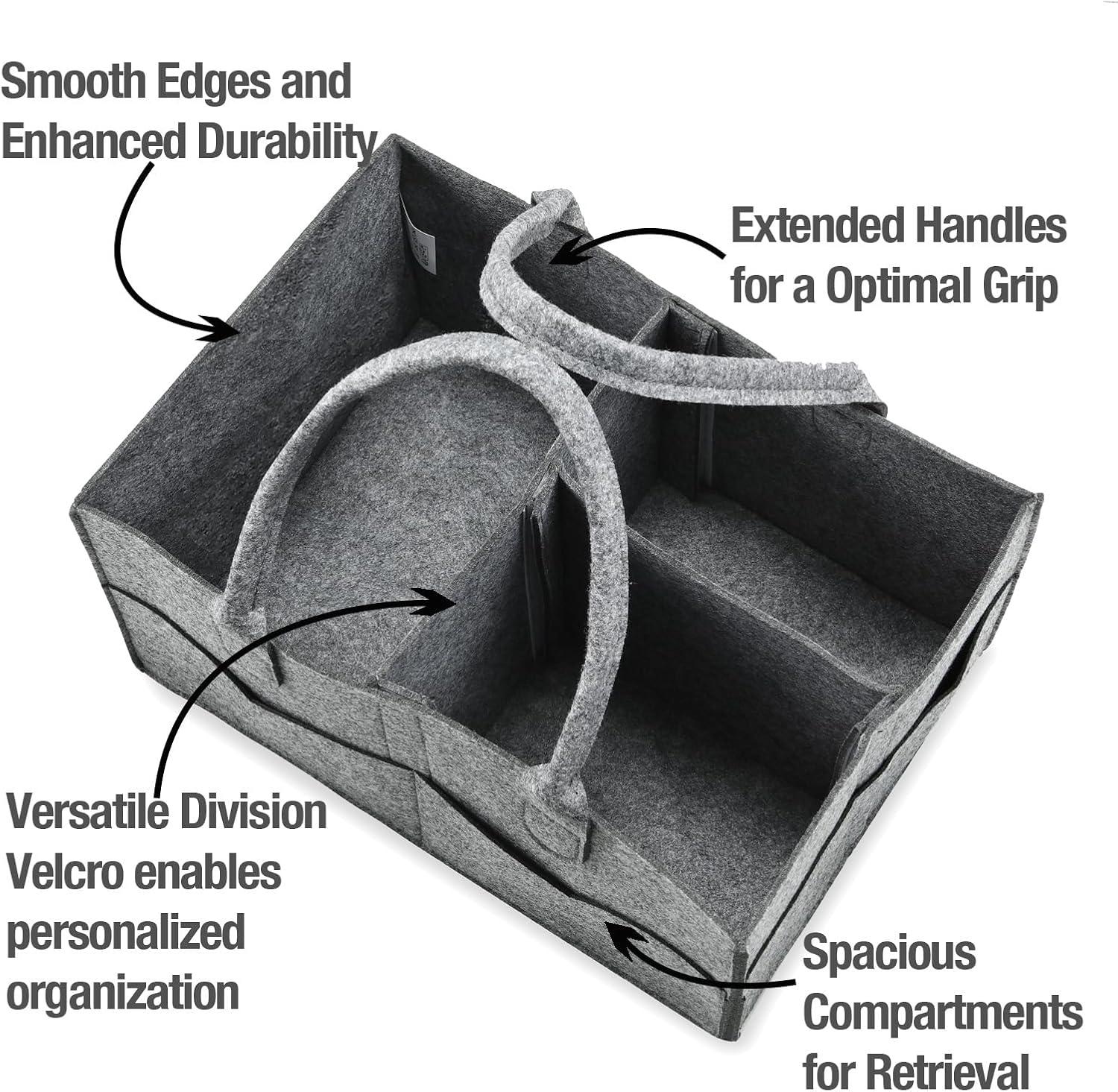 - [Decoração Elegante para o Quarto do Bebê]: Medindo 33 cm x 23 cm x 18 cm, este organizador de fraldas apresenta um design elegante na cor cinza que combina com qualquer decoração. Com 5 bolsos externos e 3 compartimentos, oferece amplo espaço para armazenar fraldas, lenços umedecidos, cremes e outros itens essenciais para a troca do seu bebê.