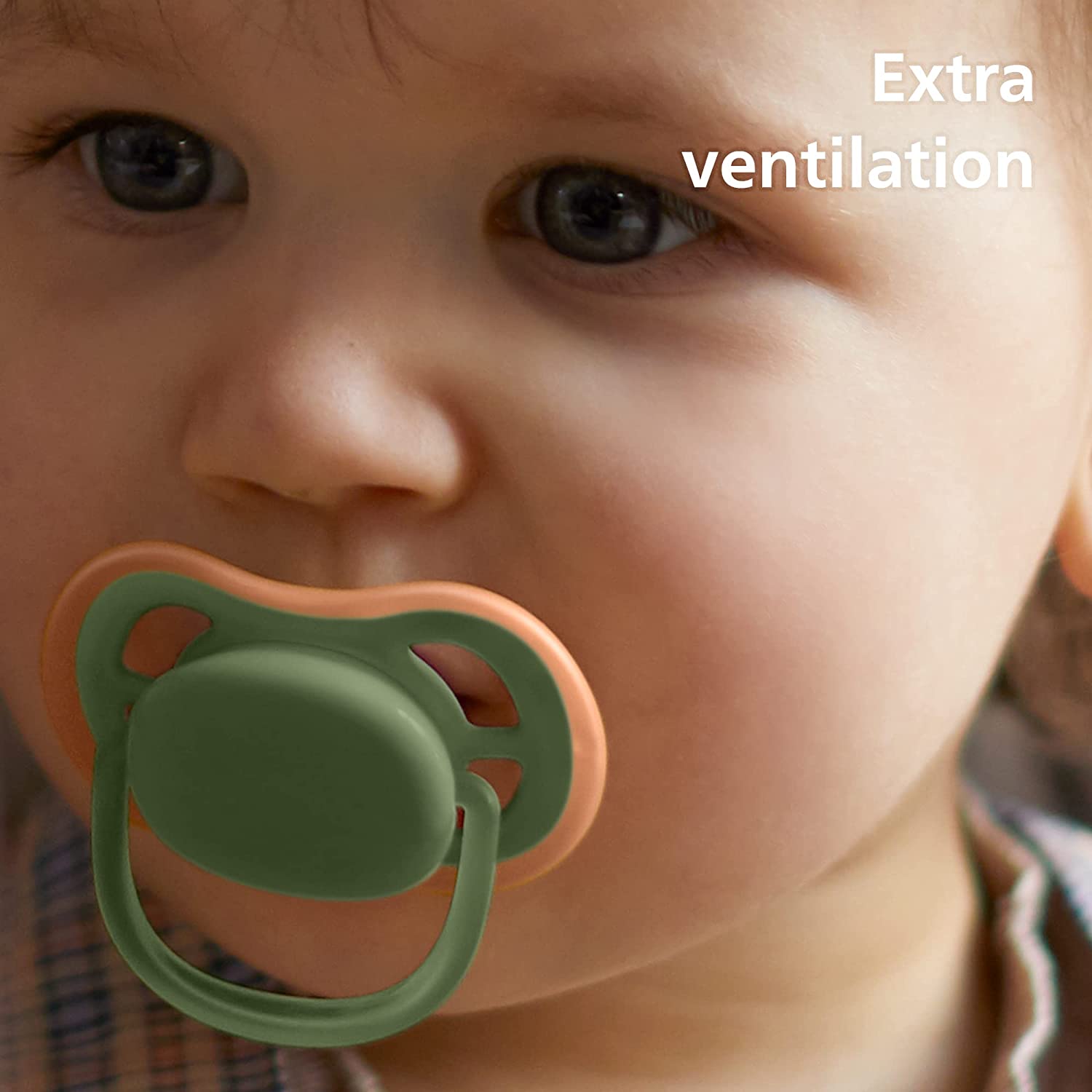 Chupeta respirável: a chupeta Philips Avent Ultra Air é uma chupeta leve, respirável e livre de BPA com orifícios de ar extragrandes que permitem que a pele do bebê respire, ajudando a mantê-la macia e seca