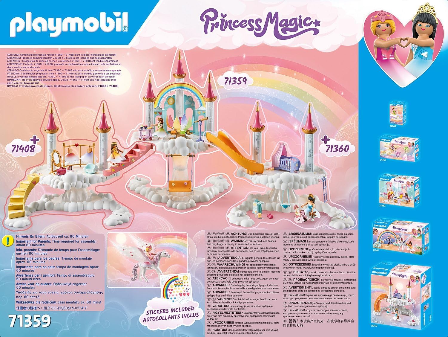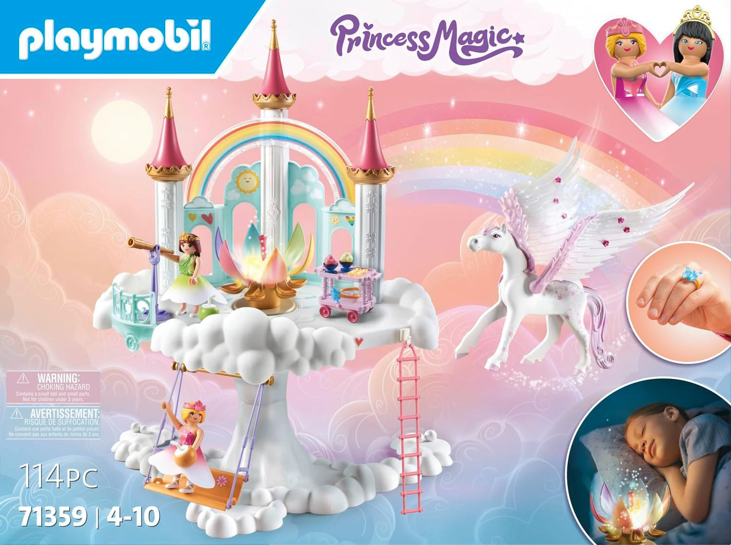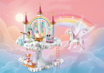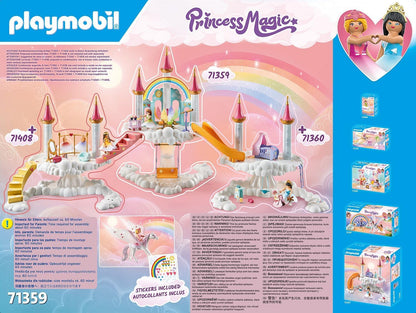 Playmobil 71359 Princess Magic: Rainbow Castle in the Clouds, um mundo mágico de conto de fadas com uma flor de arco-íris brilhante, pégaso, dramatização divertida e imaginativa, conjuntos de jogos adequados para crianças de 4 anos ou mais